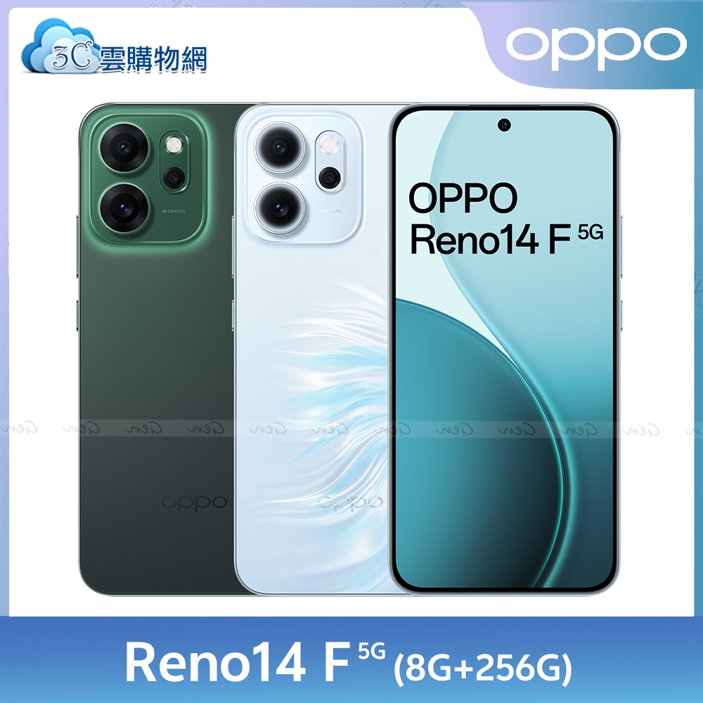 OPPO Reno14 F 8G+256G【內附保護套+保貼】6.57吋 5G智慧手機絢彩藍|靜謐綠3C雲購物網