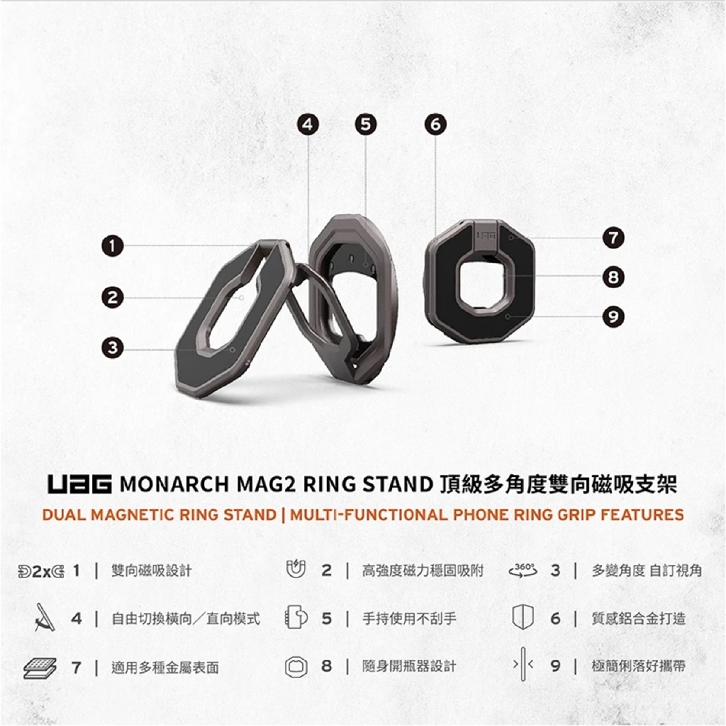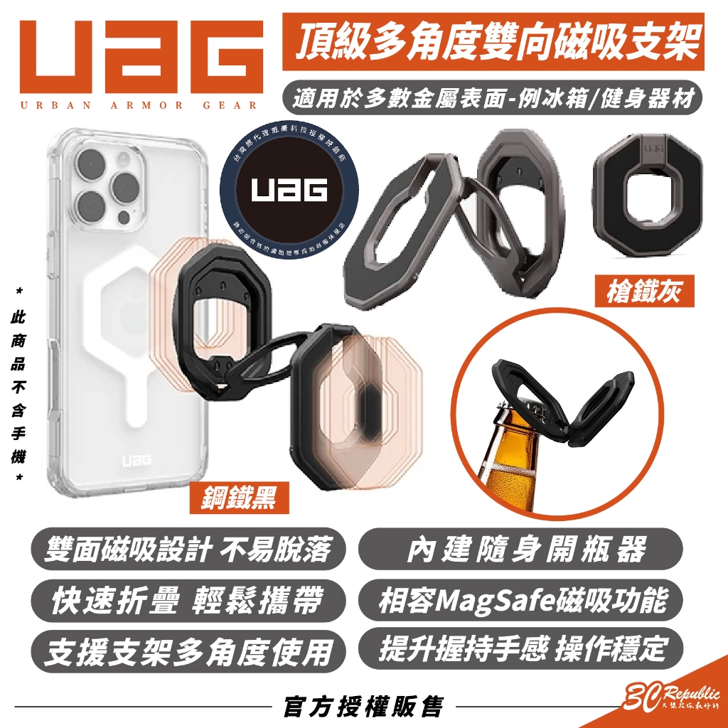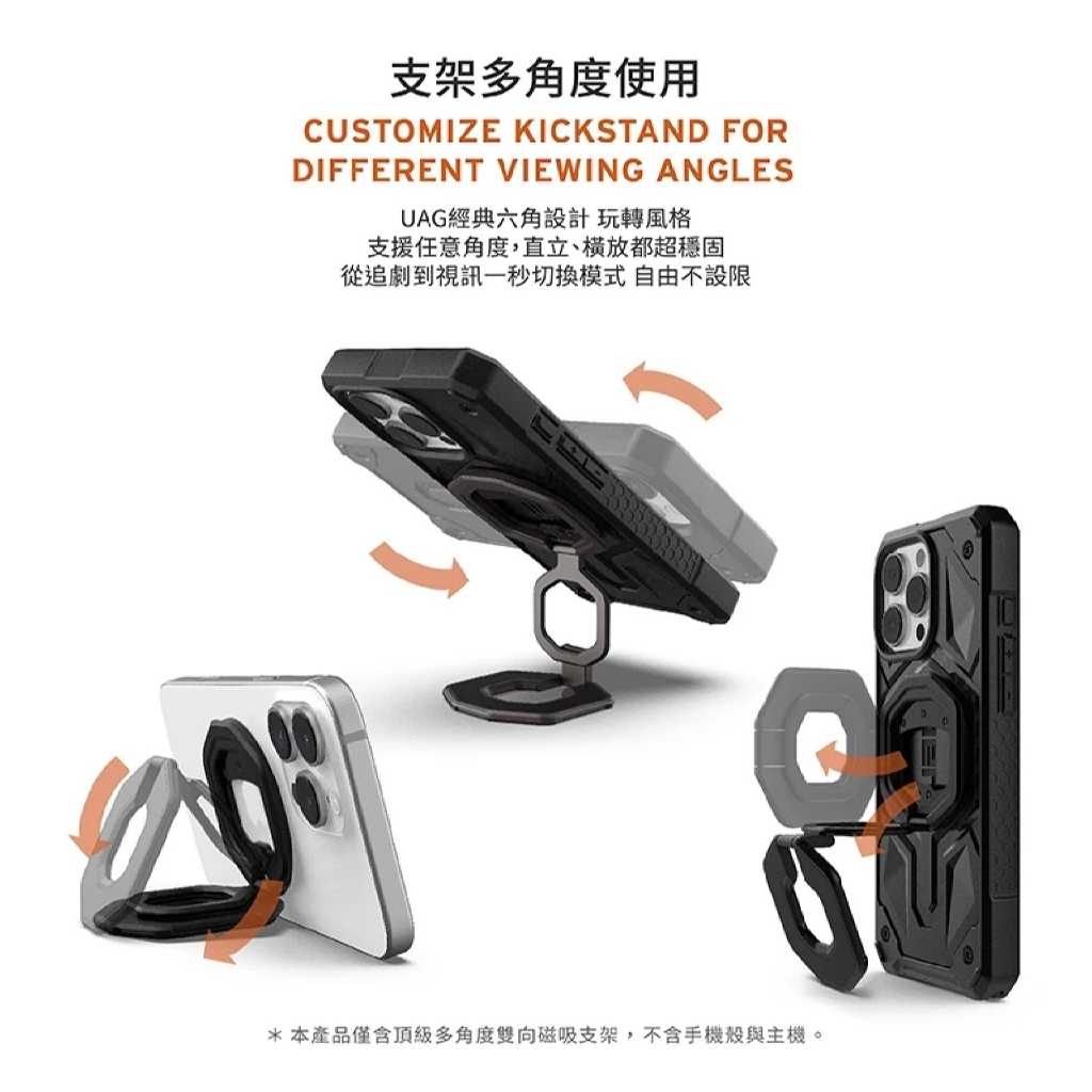 UAG 頂級 多角度 雙向 磁吸 手機 支架 手機架 支架 MagSafe 適 iPhone 17 16 15 S25頂級多角度雙向支架 -槍鐵灰|頂級多角度雙向支架-鋼鐵黑Phone Grips3c共和國
