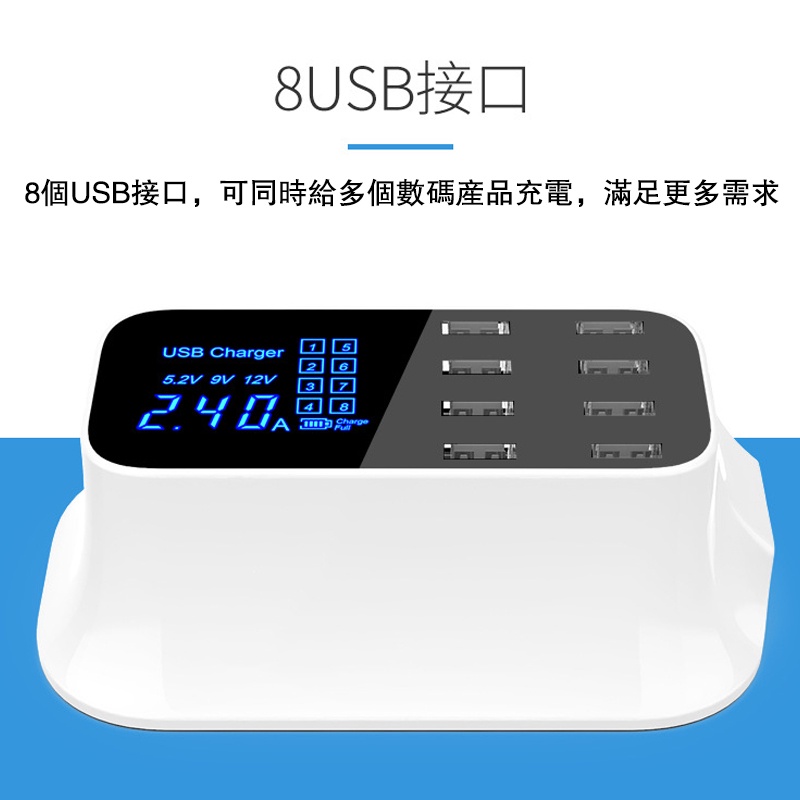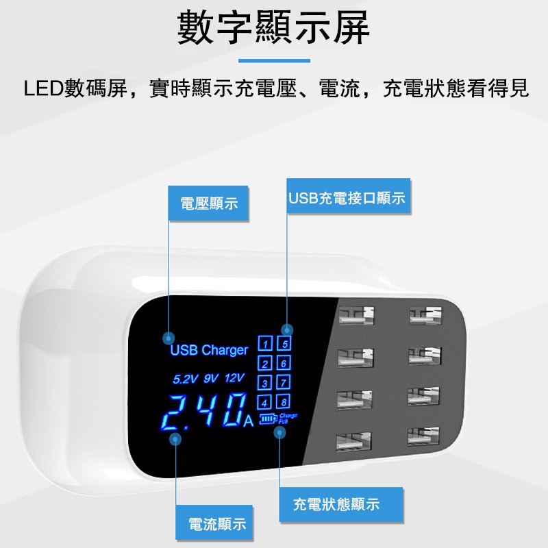 八孔液晶usb充電器 適用蘋果IOS/安卓等裝置 2.4a充電器 LCD液晶螢幕 7大保護 智慧型的充電器 液晶充電器八孔液晶usb充電器 適用蘋果IOS/安卓等裝置 2.4a充電器 LCD液晶螢幕 7大保護 智慧型的充電器 液晶充電器Cables, Chargers & ConvertersADHIL旗艦店