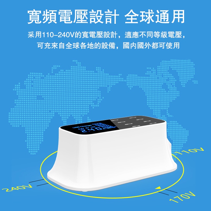 八孔液晶usb充電器 適用蘋果IOS/安卓等裝置 2.4a充電器 LCD液晶螢幕 7大保護 智慧型的充電器 液晶充電器