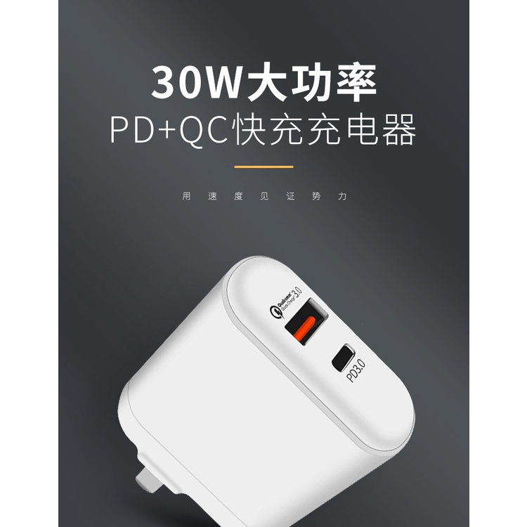 • PD30W閃充電頭 適用蘋果iPhone/iPad/安卓/平板/手機雙孔 PD/QC 快充頭 快充 閃充 充電頭 充電器