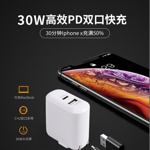 PD30W閃充電頭 適用蘋果iPhone/iPad/安卓/平板/手機雙孔 PD/QC 快充頭 快充 閃充 充電頭 充電器