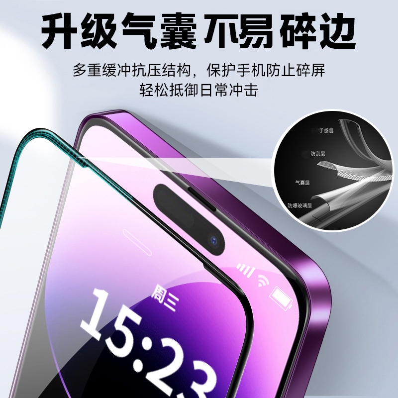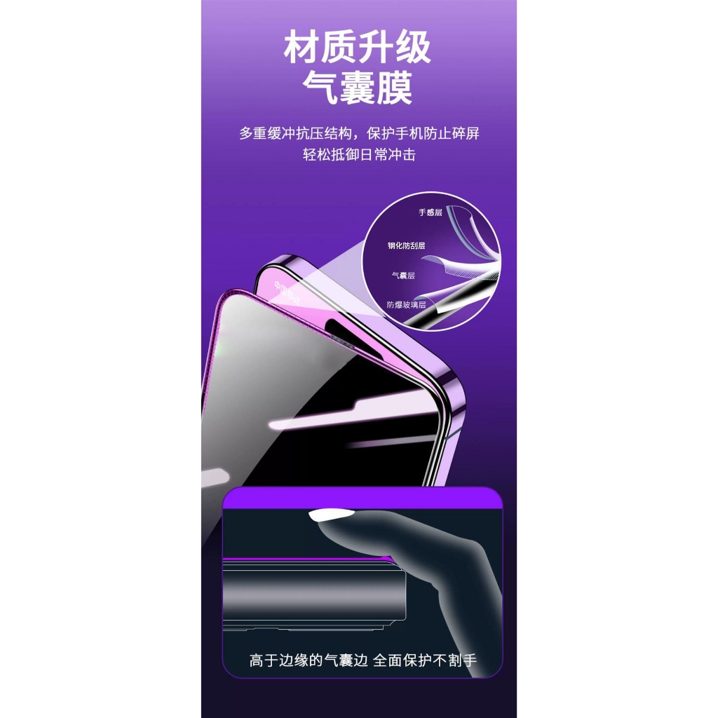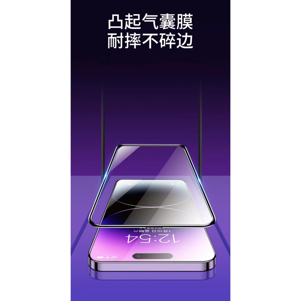 • 除塵艙氣囊邊鋼化膜 適用蘋果iPhoneXR/15Pro/16/12/14/13 氣囊邊防偷窺膜 防摔膜 氣墊玻璃保護貼