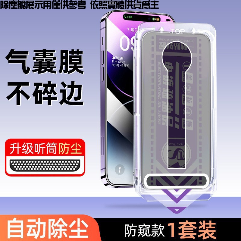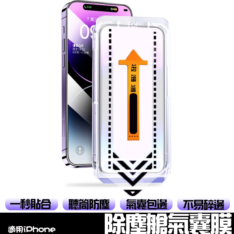 除塵艙氣囊邊鋼化膜 適用蘋果iPhoneXR/15Pro/16/12/14/13 氣囊邊防偷窺膜 防摔膜 氣墊玻璃保護貼