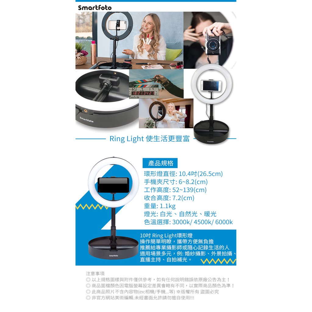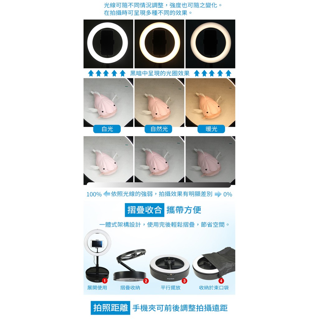 Smartfoto 10吋 網紅直播環形燈 10段式亮度級別 收合方便 攜帶輕鬆 三種光線可調白光 自然光 暖光Smartfoto 10吋 網紅直播環形燈 10段式亮度級別 收合方便 攜帶輕鬆 三種光線可調白光 自然光 暖光Mobile Flashes & Selfie Lights2魔 攝影