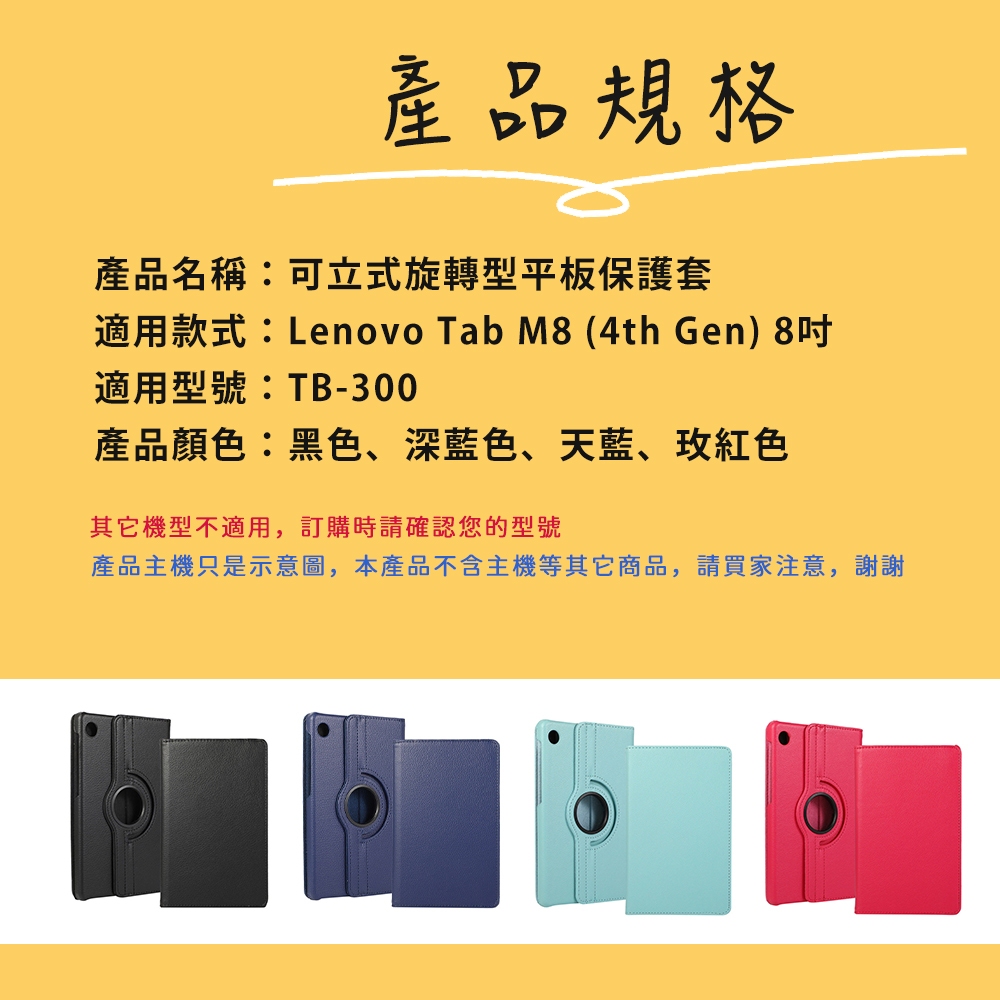 聯想 Lenovo Tab M8 4th Gen 旋轉皮套 保護殼 TB300FU TB301FU【LV00018】【黑色】保護殼|【深藍】保護殼|【玫紅】保護殼|【天藍】保護殼Cases, Covers, & Skins【隔日配】JHS專營日用品、汽車百貨、3C周邊