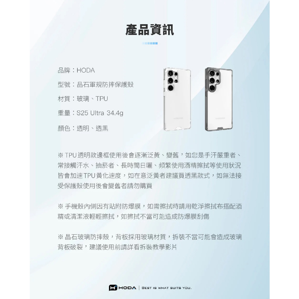 HODA 晶石 玻璃 保護殼 透明殼 防摔殼 手機殼 適 Samsung S25 Ultra透明S25 Ultra|透黑S25 UltraCases, Covers, & Skins3C Girl