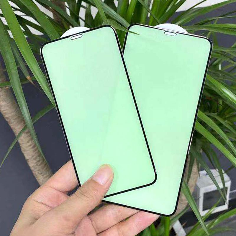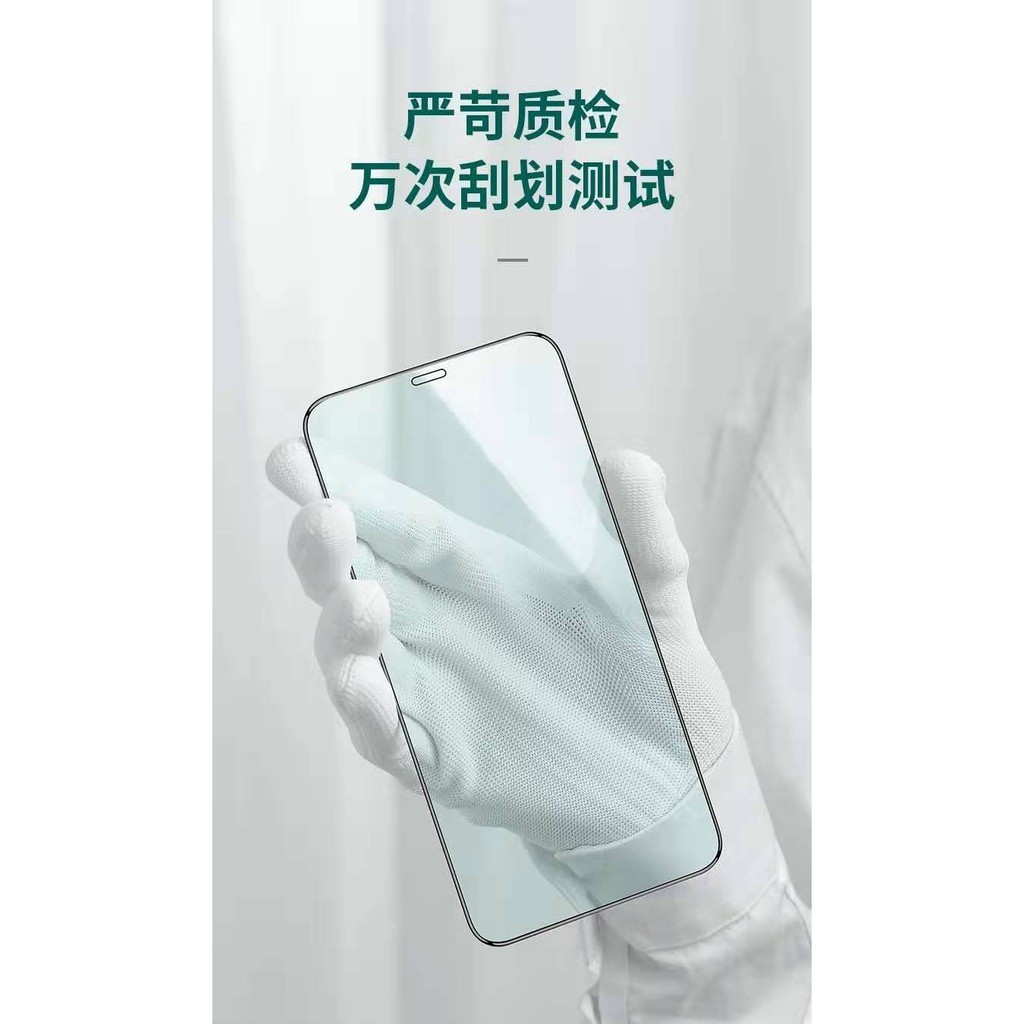蘋果綠光玻璃保護貼 透光防指紋 濾藍光 適用iPhone8/XR/11/12/13/14Pro/15/16 全包疏油疏水