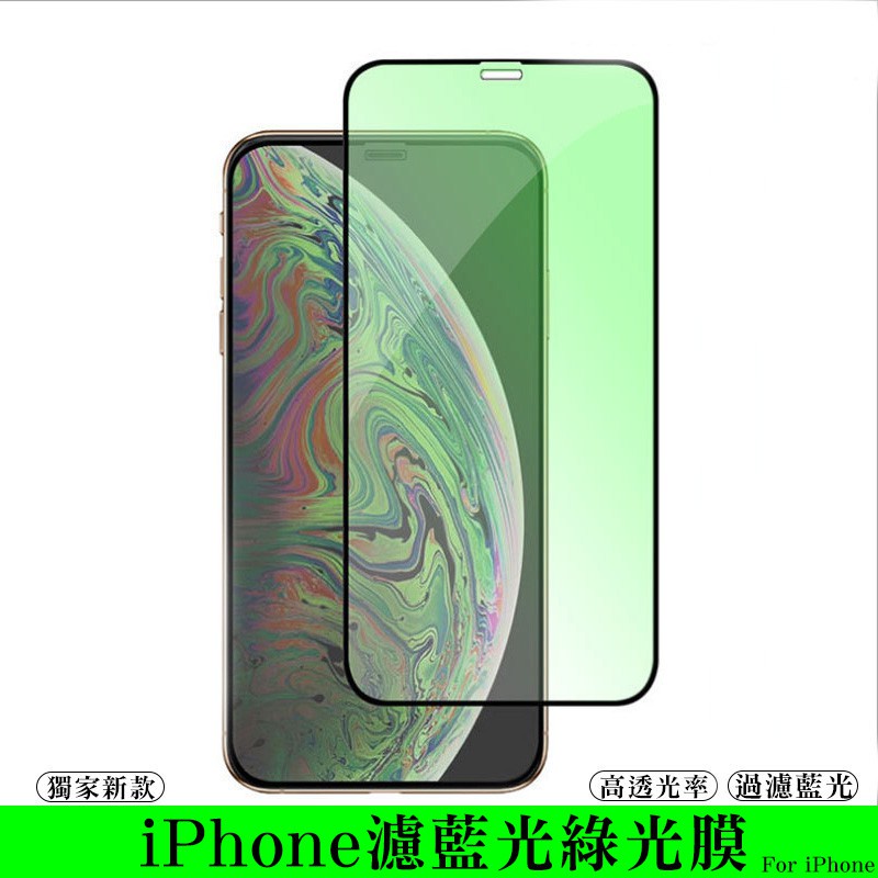 • 蘋果綠光玻璃保護貼 透光防指紋 濾藍光 適用iPhone8/XR/11/12/13/14Pro/15/16 全包疏油疏水