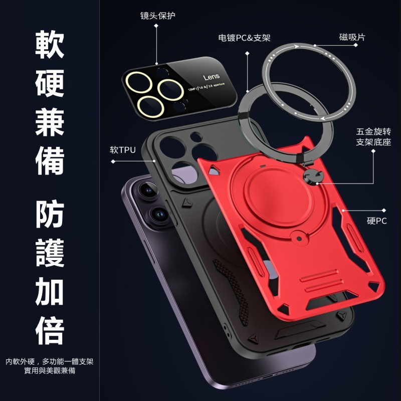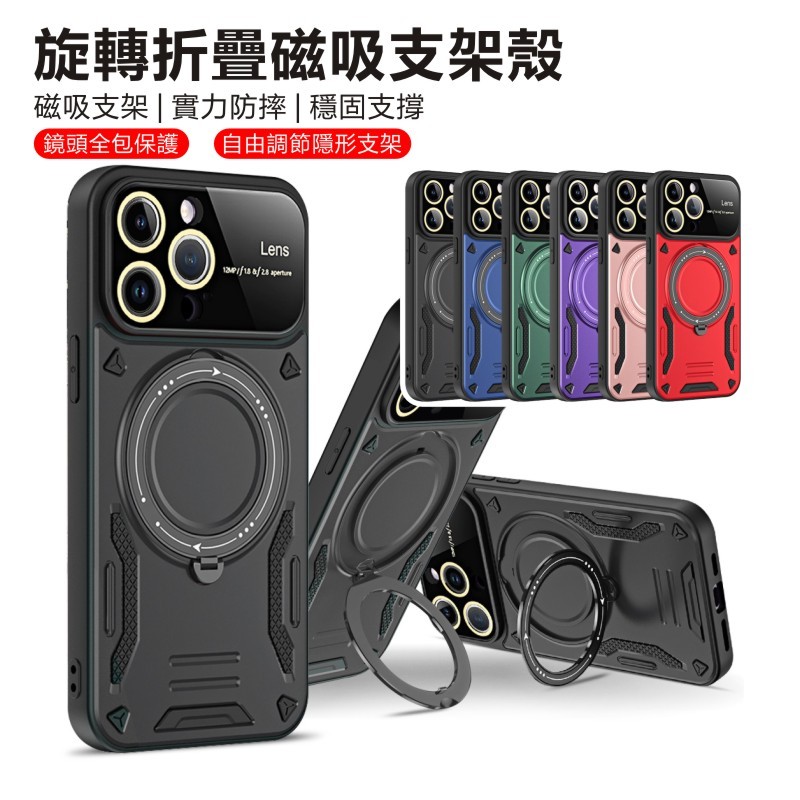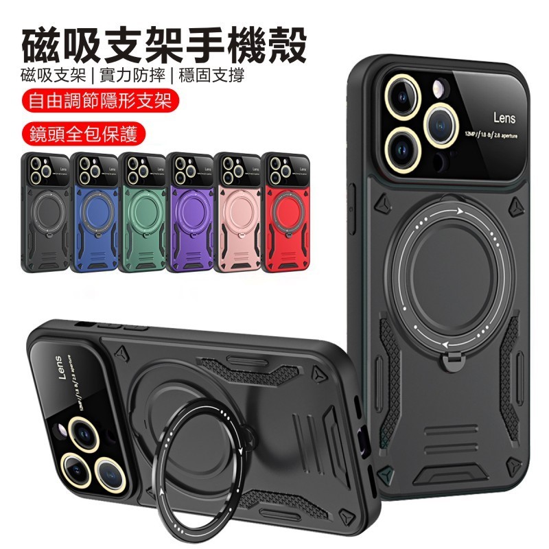 • 旋轉支架 磁吸保護殼 防摔手機殼 適用蘋果iPhone16/15/14/13/12/Pro 隱藏支架殼 磁吸殼 支架殼