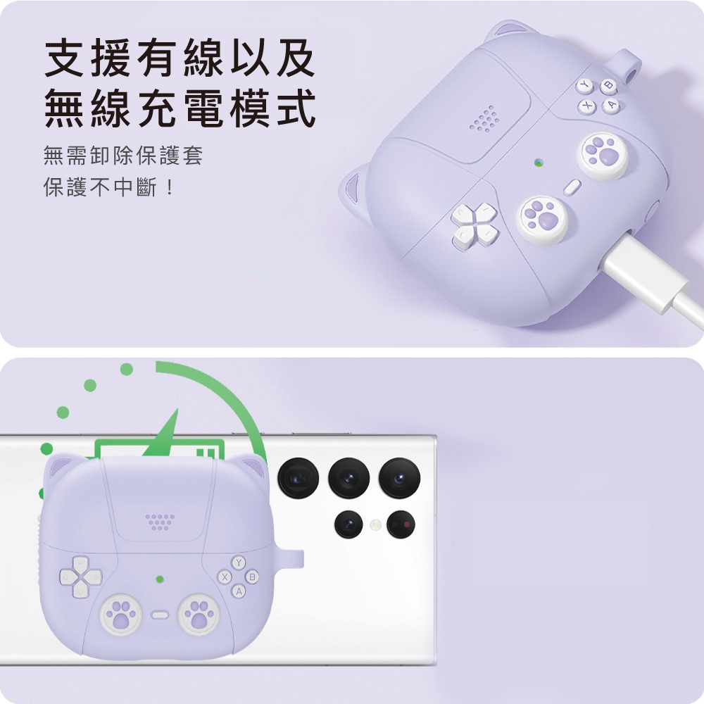 AHAStyle Samsung Galaxy Buds3&2(Pro)/Live 遊戲機(貓掌)造型超厚防摔矽膠保護套