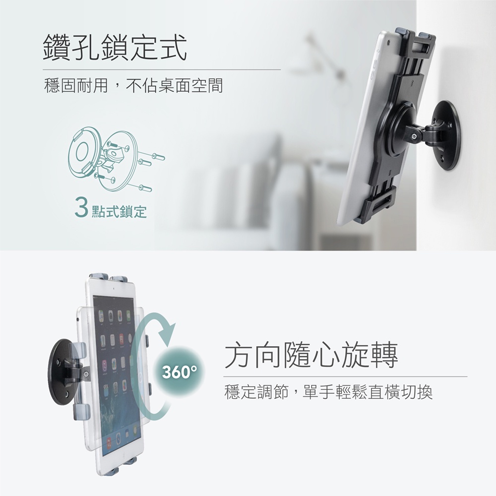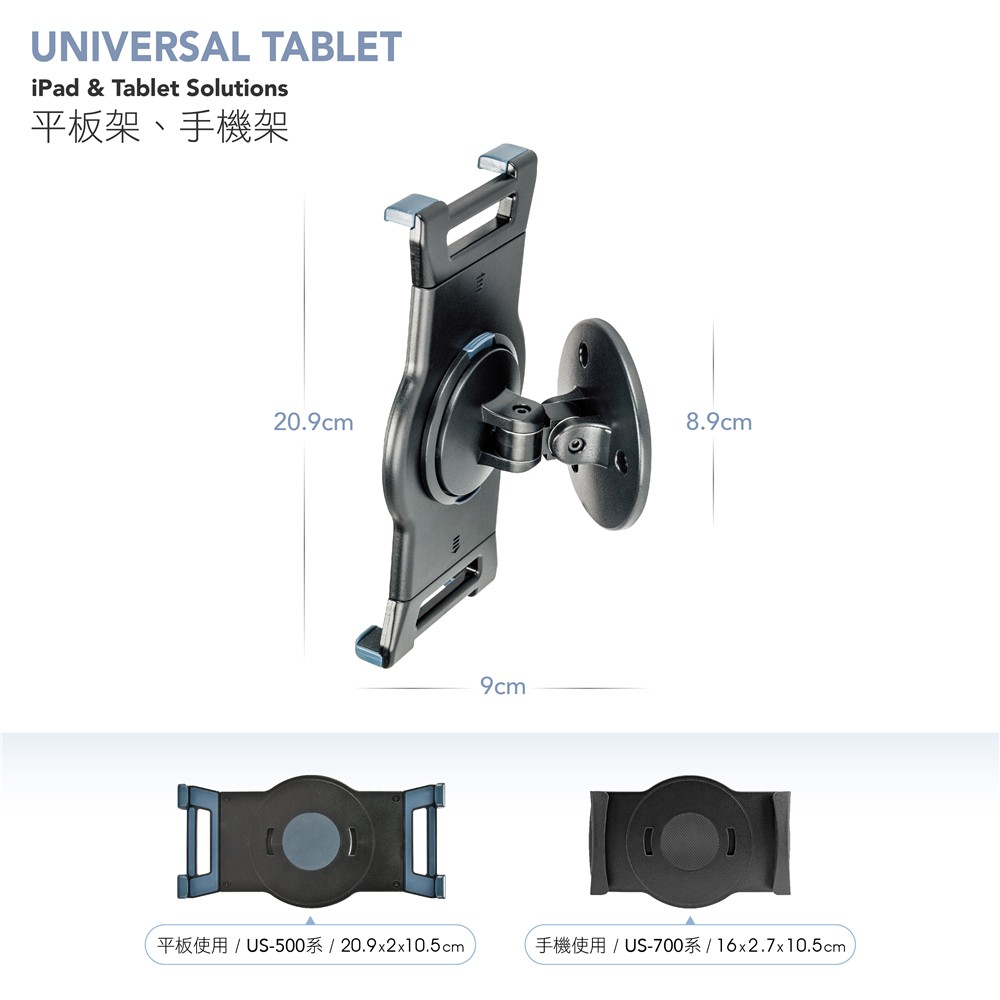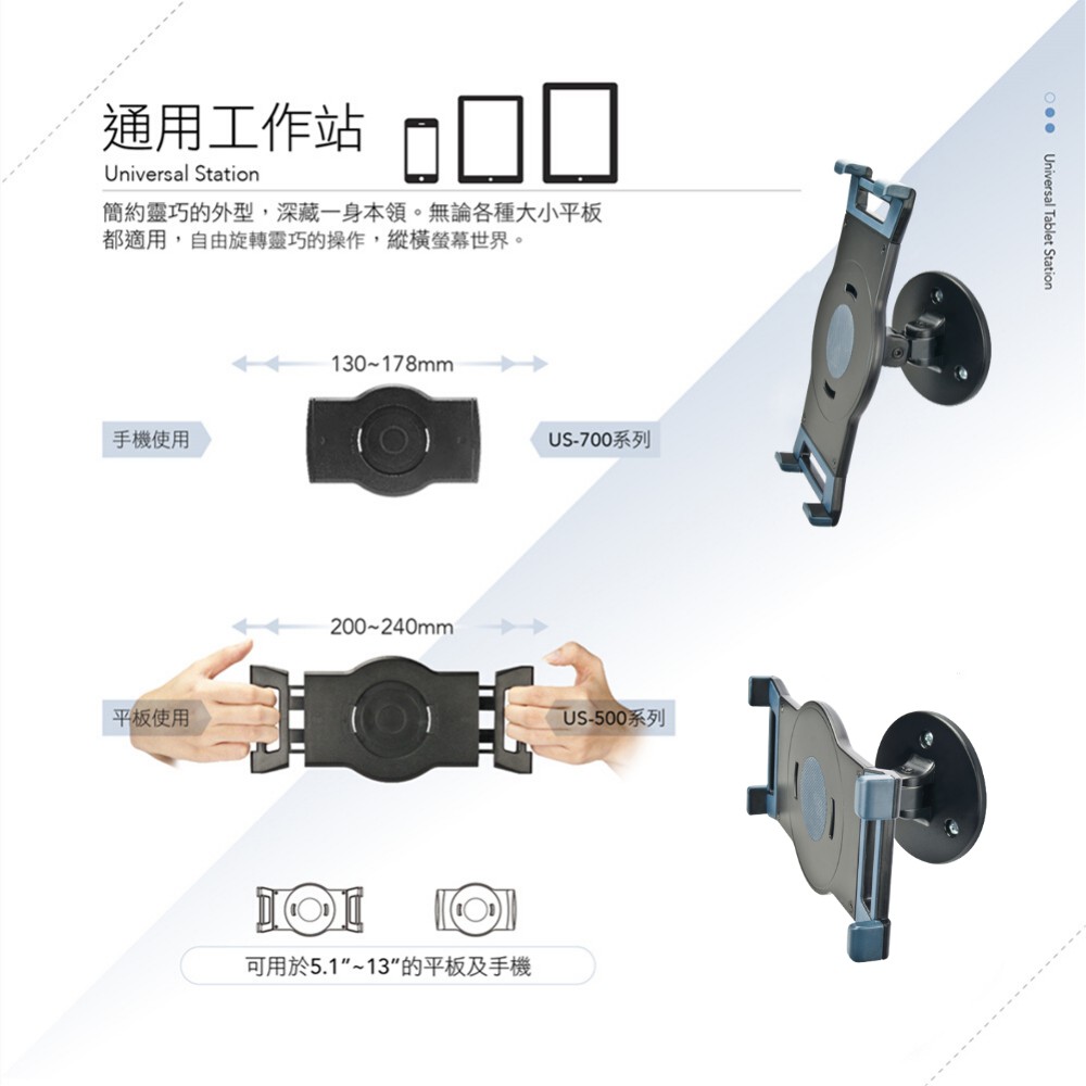 AIDATA愛得他 5.1~13吋壁掛式萬用手機/平板電腦支架 US-5111L 附贈7001-U夾具【黑色】壁掛式支架/附7001-U夾具Selfie AccessoriesAIDATA 愛得他