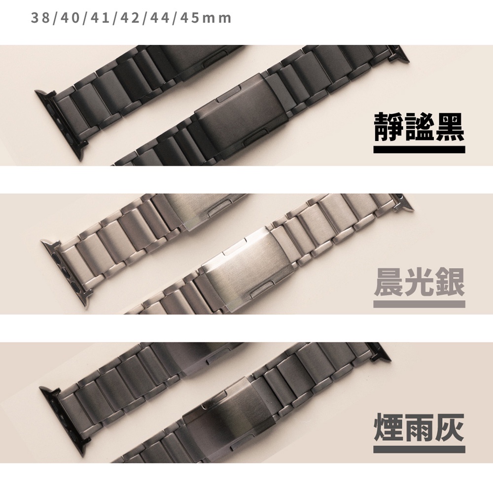 【太空金屬-鈦Ti】AllTi22 經典三排鈦合金 Apple watch通用錶帶 Ultra S10 S9 S8 SE晨光銀,38/40/41/42(10代)mm|晨光銀,42/44/45/46/49mm|煙雨灰,38/40/41/42(10代)mm|煙雨灰,42/44/45/46/49mm|靜謐黑,38/40/41/42(10代)mm|靜謐黑,42/44/45/46/49mm|晨光銀,一般錶帶(22mm寬)|靜謐黑,一般錶帶(22mm寬)|煙雨灰,一般錶帶(22mm寬)Wearable AccessoriesAllTime 完全計時|智慧穿戴