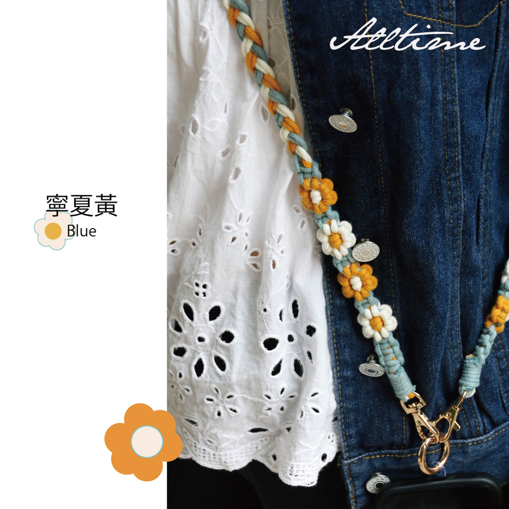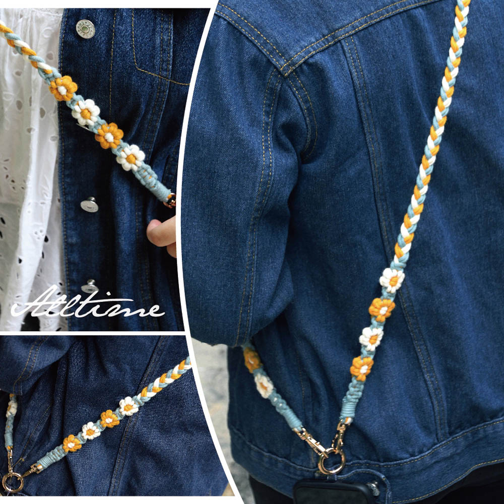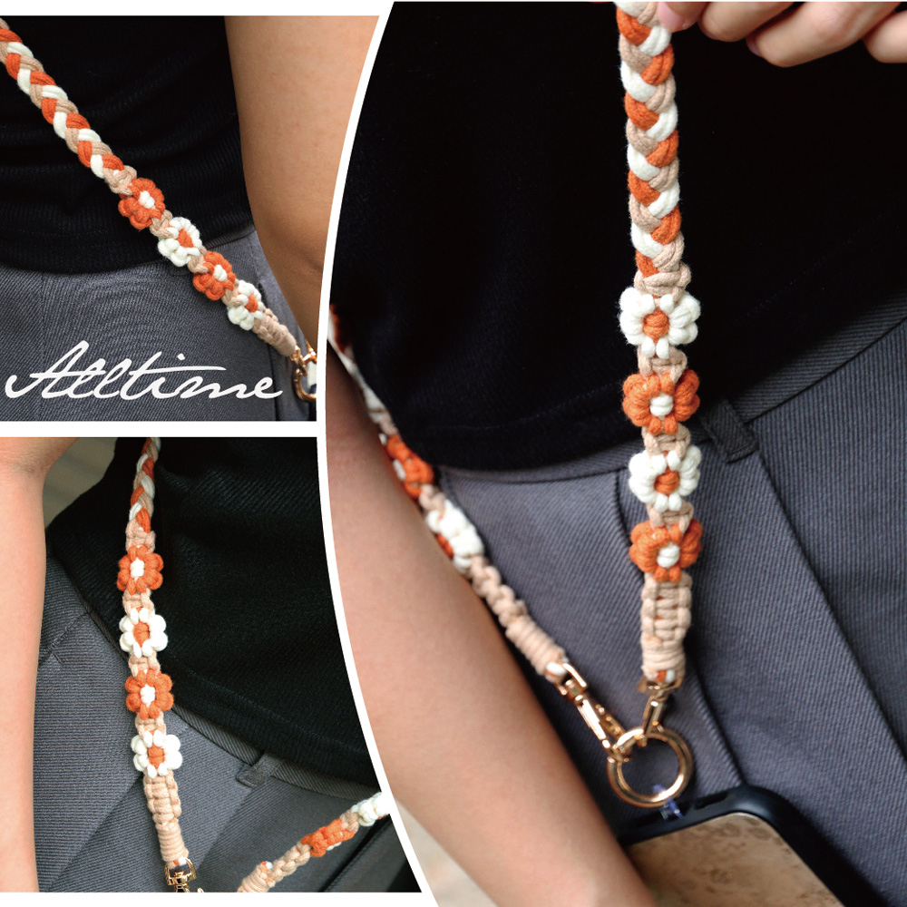 【AllTime】macrame小花朵朵三股辮手機背繩 (附夾片) 手機掛繩 手機吊繩 手機背帶 手機繩 編織繩寧夏黃|夕暉橘Phone Straps & KeychainsAllTime 完全計時|智慧穿戴