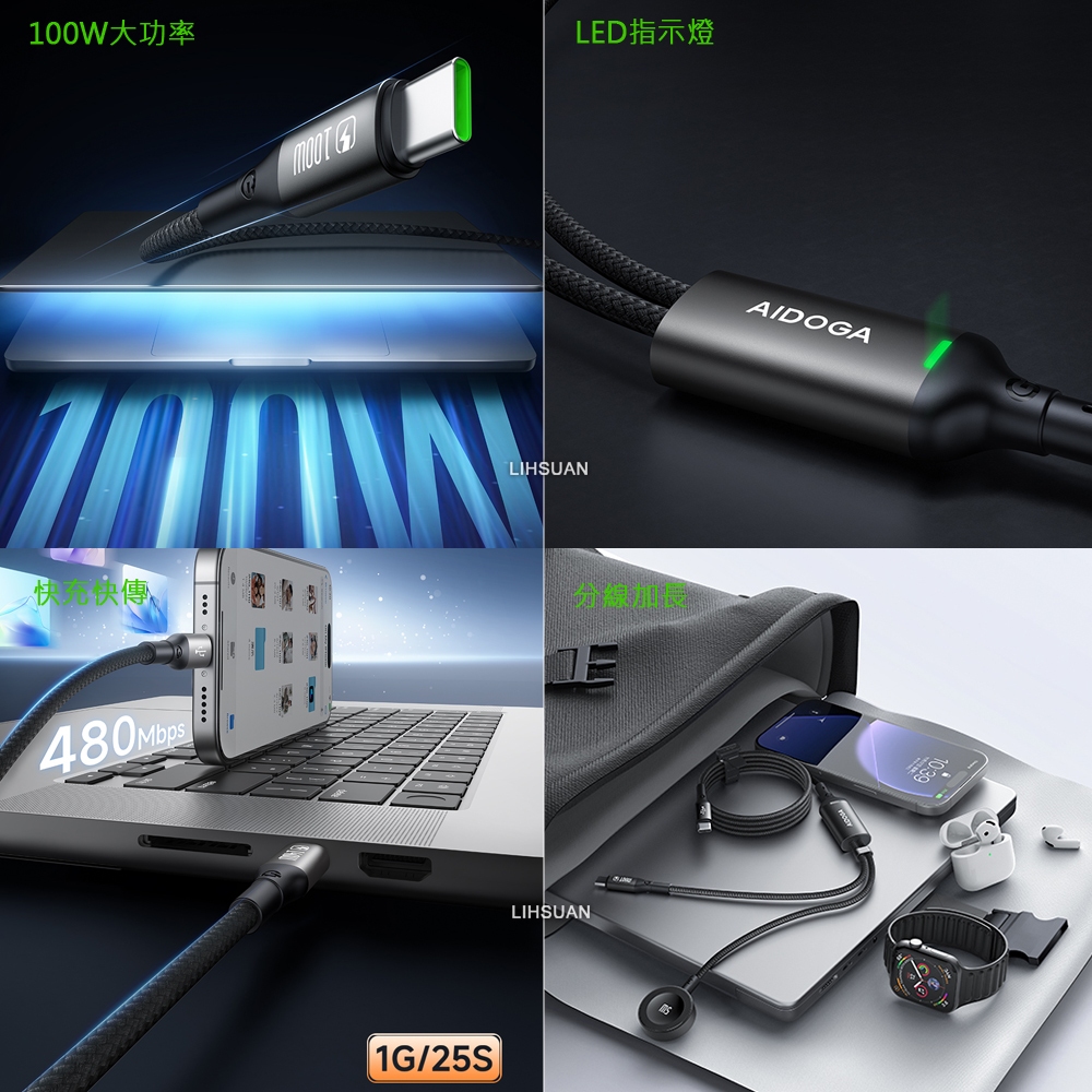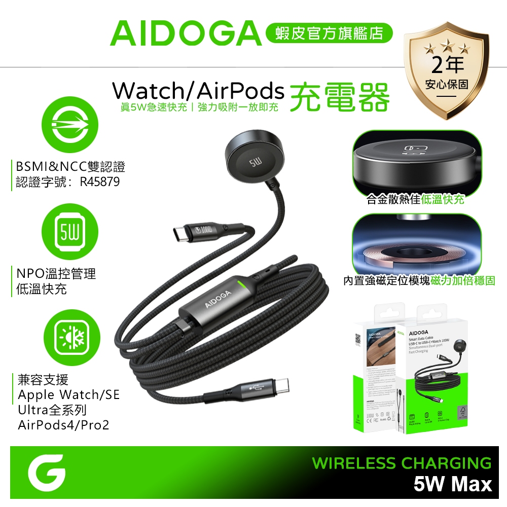 AIDOGA 艾迪伽 一分二 Type-C TO Type-C/Apple Watch 全系列 PD 充電傳輸線 爵士黑色Cables, Chargers & ConvertersAIDOGA 艾迪伽官方旗艦店