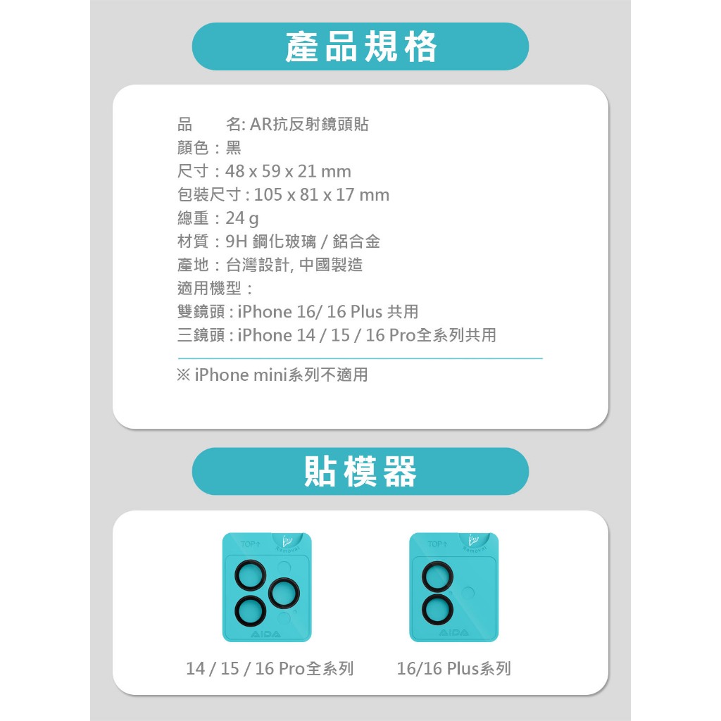 AIDA iPhone16系列 AR抗反射鏡頭貼雙鏡頭 16/16plus|三鏡頭I14-16˙Pro/ProMaxScreen ProtectorsAIDA品牌旗艦館-防窺/抗藍光 保護貼專賣