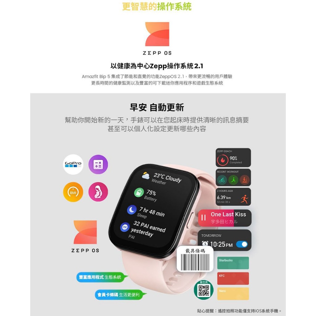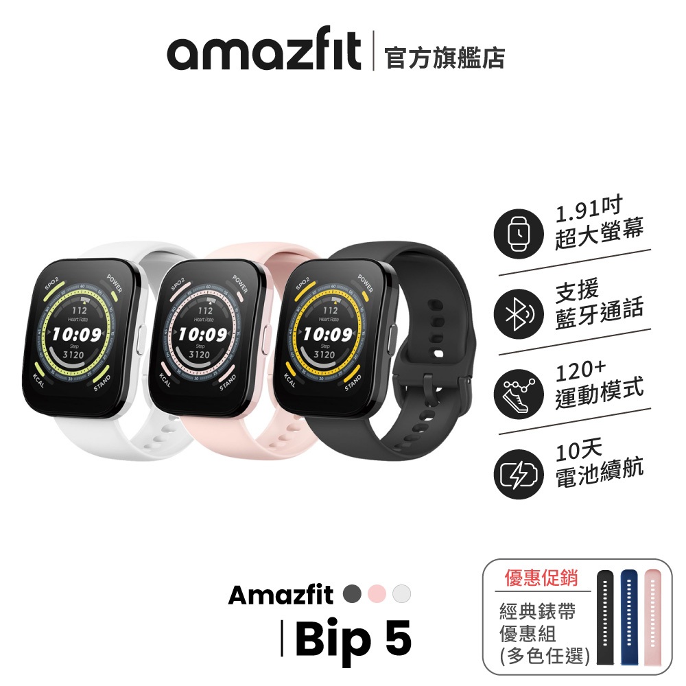 Amazfit Bip 5 46mm 大螢幕健康智慧手錶 心率/血氧/睡眠/壓力/運動/華米柔霧黑 (單購)|奶油白 (單購)|柔和粉 (單購)|柔霧黑 經典錶帶組👉購物車可選錶帶顏色|奶油白 經典錶帶組👉購物車可選錶帶顏色|柔和粉 經典錶帶組👉購物車可選錶帶顏色Smartwatches & Fitness TrackersAmazfit 智慧穿戴|官方旗艦館