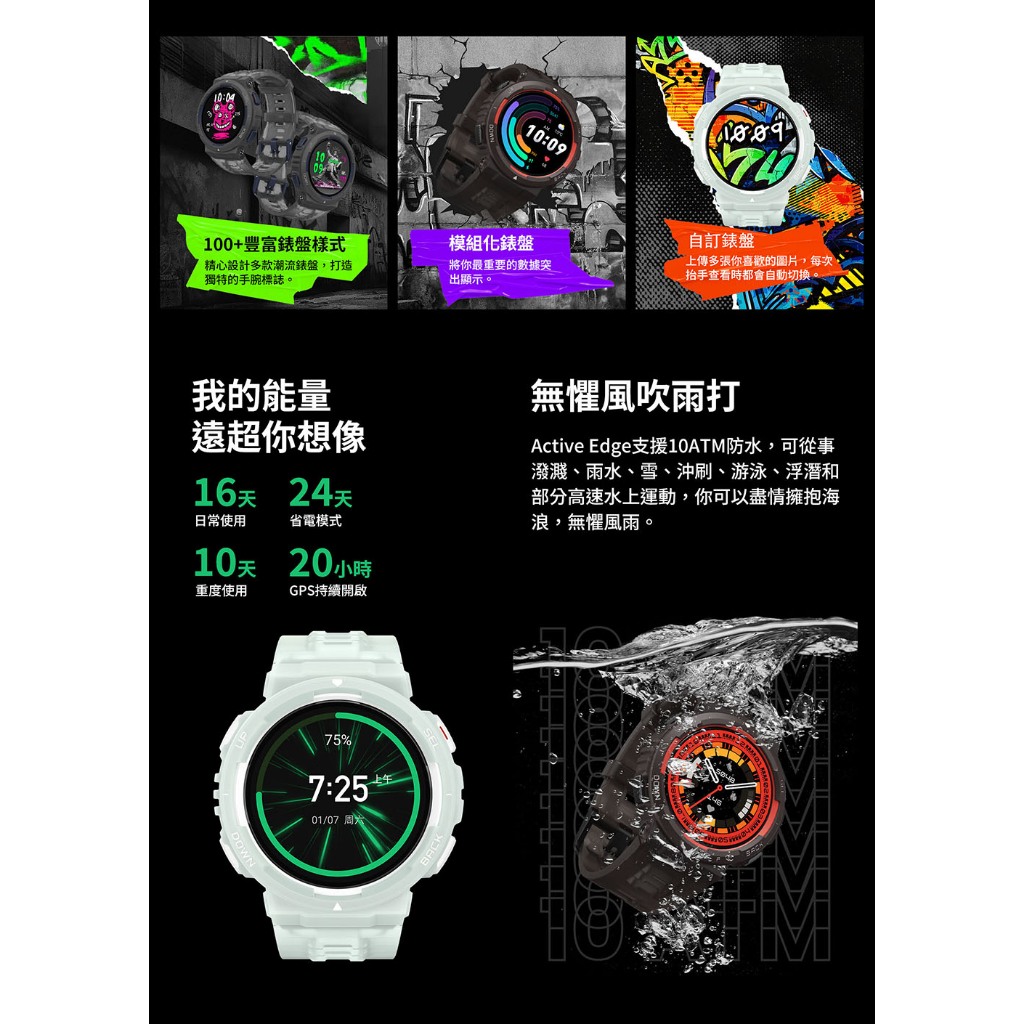 Amazfit Active Edge 46mm 潮流時尚運動智慧手錶 心率/血氧/睡眠/壓力/運動/華米熔岩黑|午夜灰|遠山青Smartwatches & Fitness TrackersAmazfit 智慧穿戴|官方旗艦館