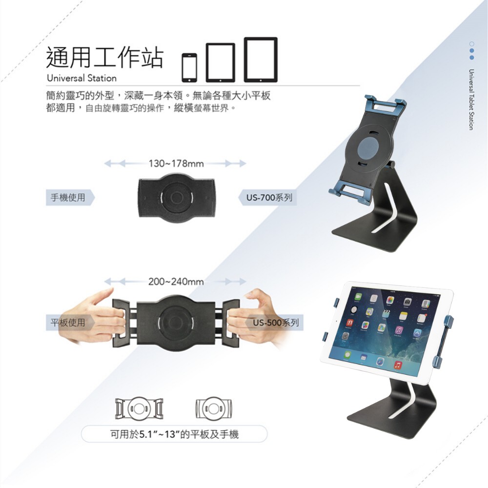 AIDATA 愛得他 5.1~13吋萬用手機/平板電腦金屬支架座 US-5040 附贈7001-U夾具【黑色】金屬支架/附7001-U夾具Selfie AccessoriesAIDATA 愛得他