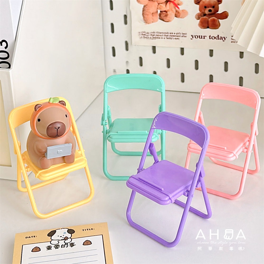 AUHA阿華有事嗎 粉嫩小椅子折疊手機支架【F0024】可調式 摺疊 手機支架 桌上型 懶人支架粉色|黃色|綠色|紫色Selfie AccessoriesAHUA 韓國襪子品牌旗艦店