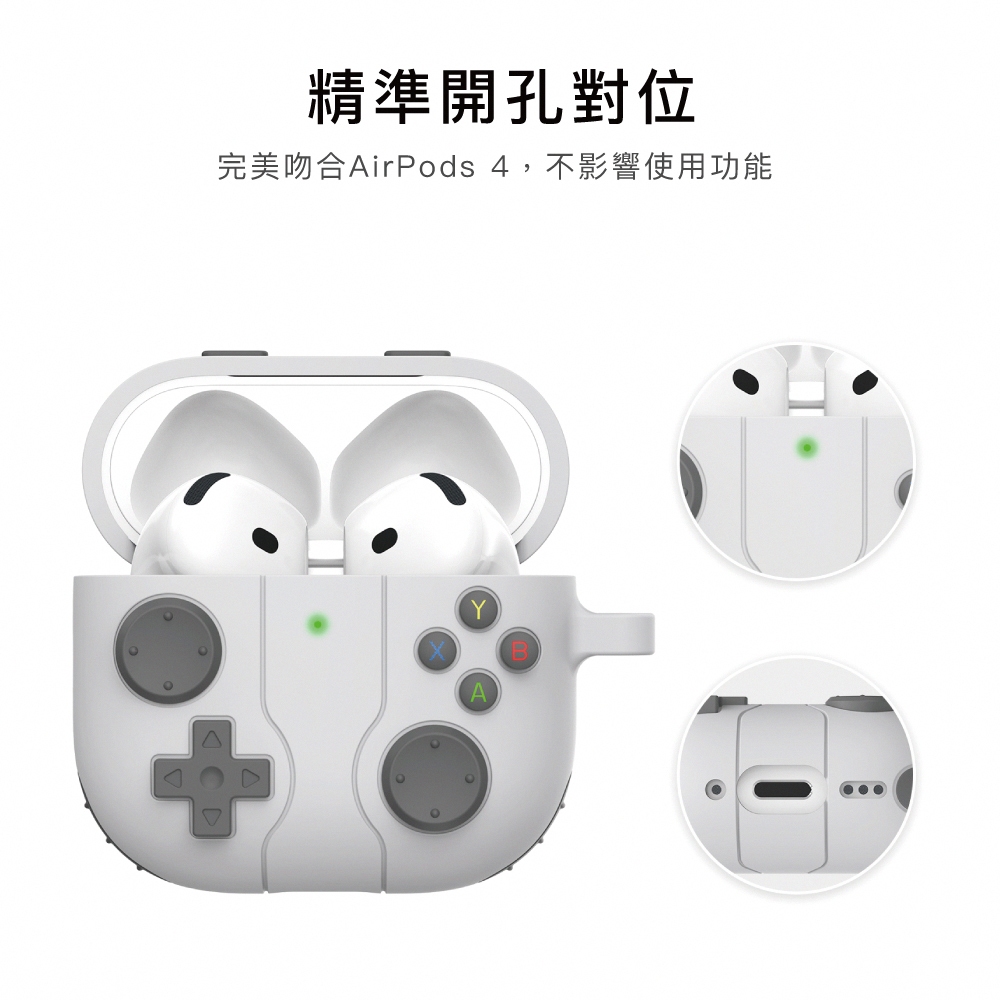 AHAStyle AirPods 4代 遊戲機造型 防摔矽膠保護套(附防丟掛鉤)淺灰色Wearable AccessoriesAHAStyle 官方旗艦店
