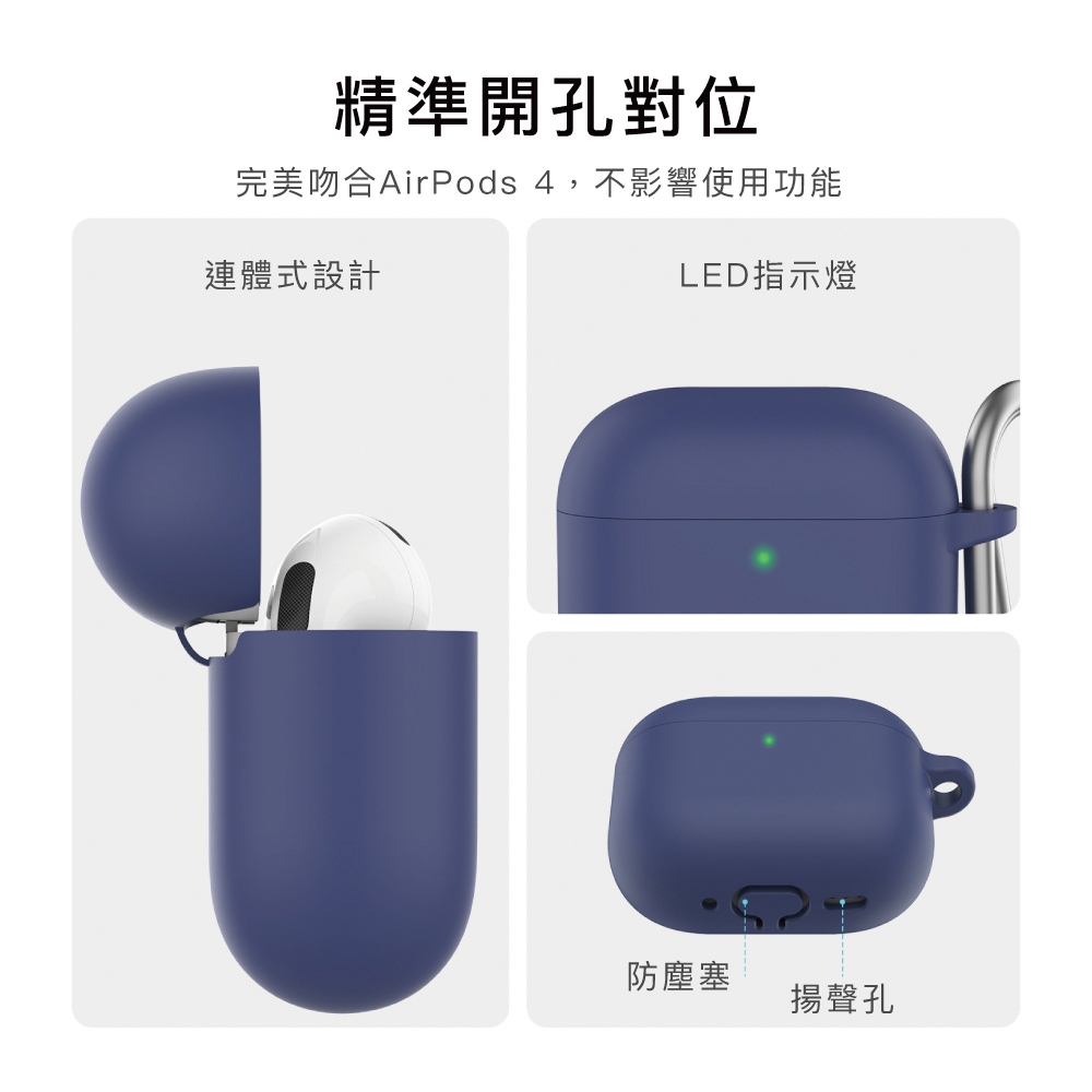 AHAStyle AirPods 4代 連體款矽膠保護殼 防摔保護套(附防丟掛鉤)