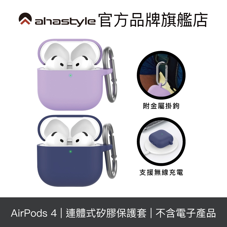 AHAStyle AirPods 4代 連體款矽膠保護殼 防摔保護套(附防丟掛鉤)紫色|午夜藍色Wearable AccessoriesAHAStyle 官方旗艦店