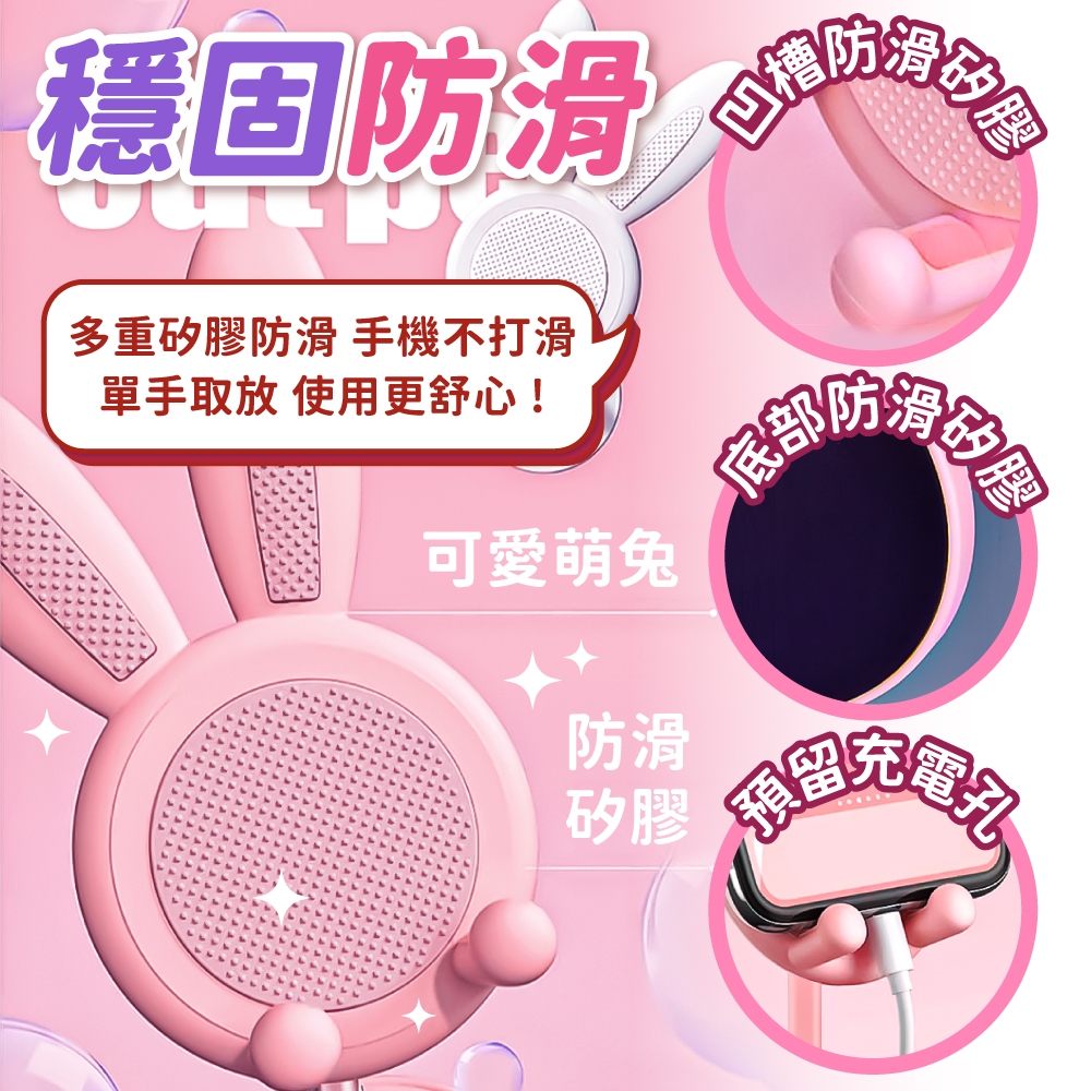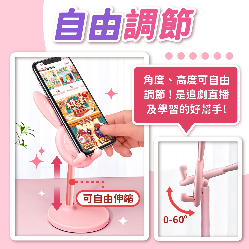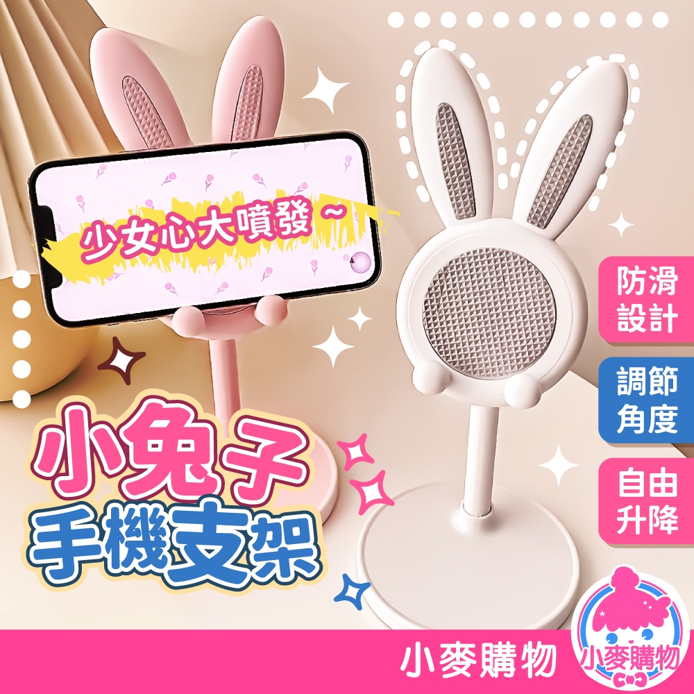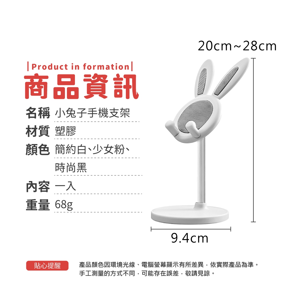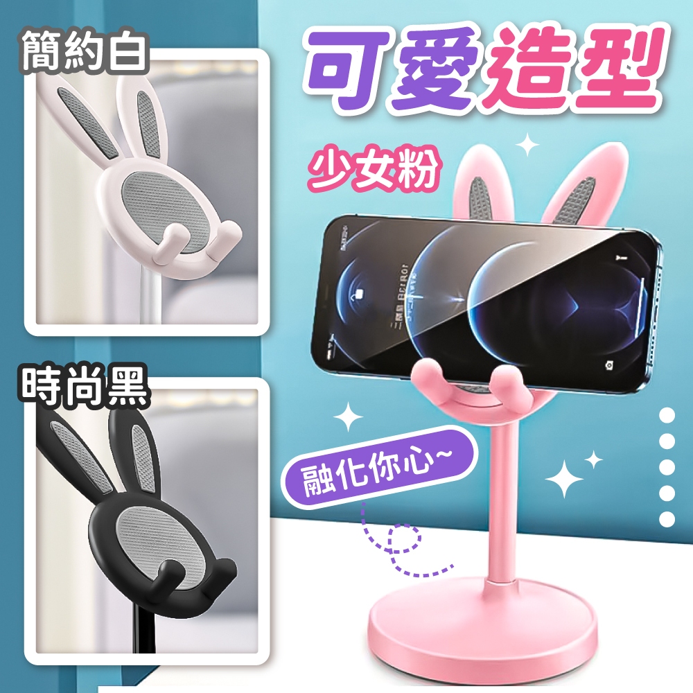 小兔子手機支架 手機桌面支架 可愛卡通小兔子平板 通用支架 可調節伸縮升降 懶人支架【小麥購物】【G800】時尚黑|少女粉|簡約白Selfie Accessories 小麥購物