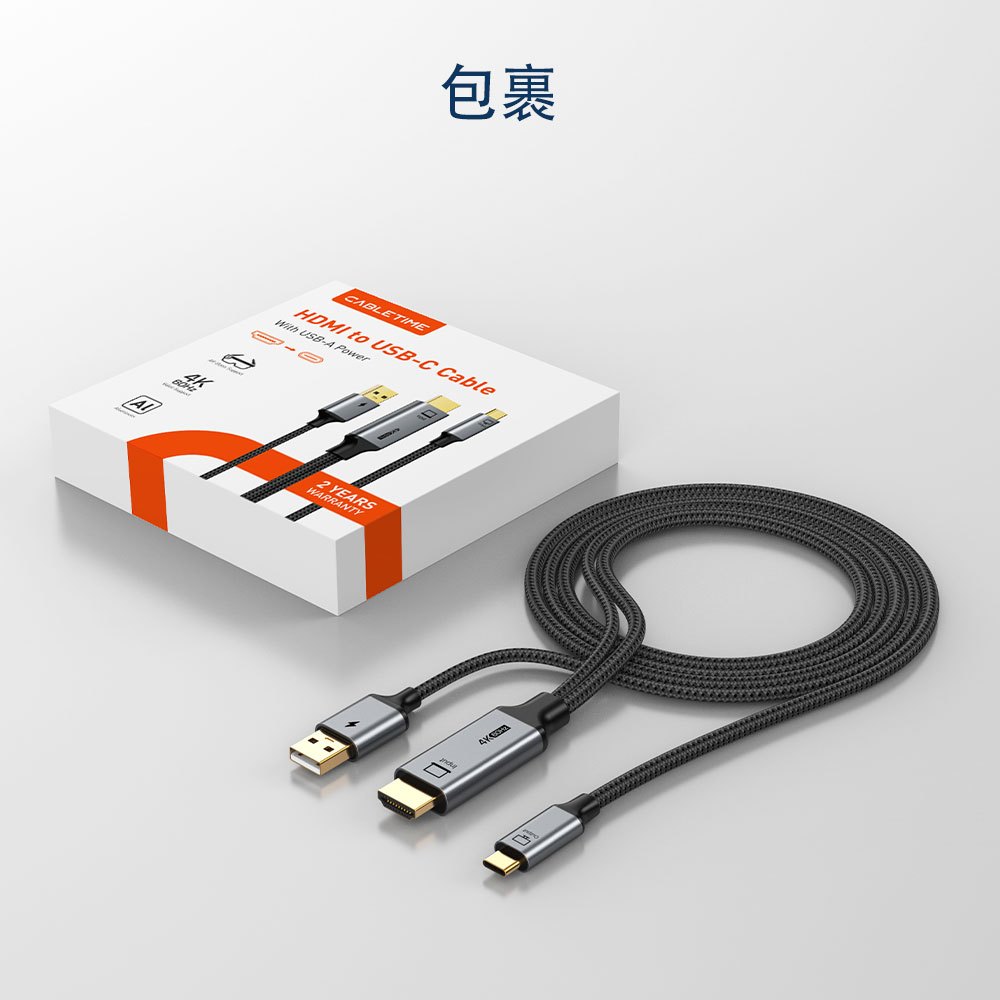 CABLETIME 4K60Hz HDMI轉USB Type C傳輸線(附USB-A供電功能)適用顯示器/電視 2mCABLETIME 4K60Hz HDMI轉USB Type C傳輸線(附USB-A供電功能)適用顯示器/電視 2mCables, Chargers & Converters~好架本舖~