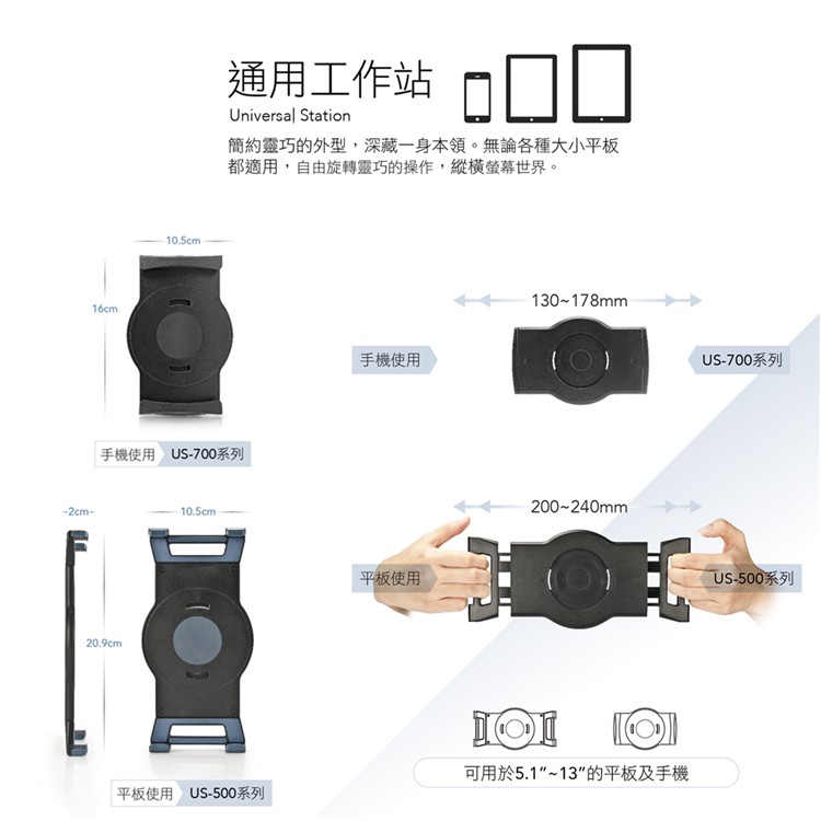 AIDATA 愛得他 萬用手機/平板支架夾具 7001-U/5001-U/0020-US【零件販售】【5001-U】夾距:20~24cm,【黑色】|【5001-U】夾距:20~24cm,【白色】|【7001-U】夾距:13~17.8cm,【黑色】|【7001-U】夾距:13~17.8cm,【白色】|【0020-US】夾距17.8~20cm,【黑色】|【0020-US】夾距17.8~20cm,【白色】Phone GripsAIDATA 愛得他