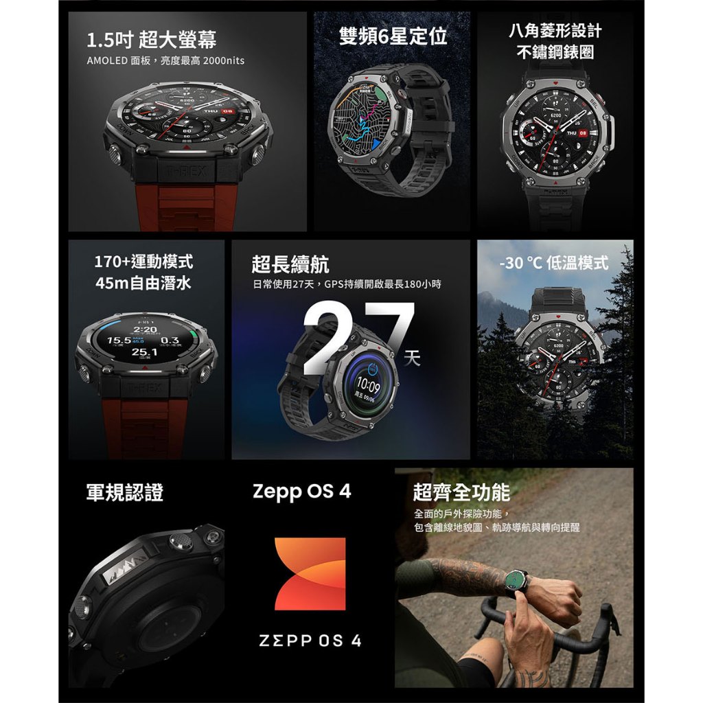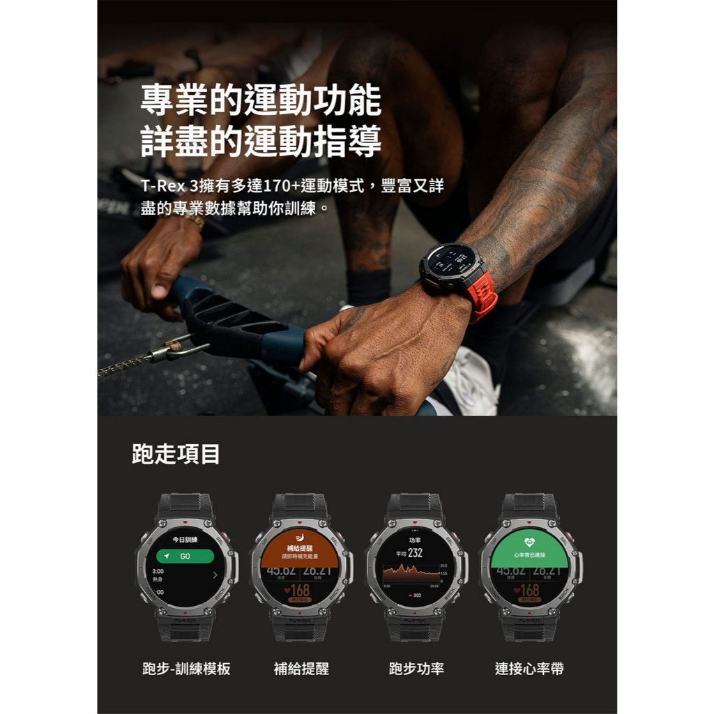 Amazfit T-Rex 3 48mm 軍規運動智慧手錶 10ATM/運動/心率/血氧/睡眠/壓力/華米玄武黑 (單購)|熔岩紅 (單購)|雲霧灰 (單購)|優惠組⚡雲霧灰+叢林綠尼龍錶帶|優惠組⚡熔岩紅+叢林綠尼龍錶帶|優惠組⚡玄武黑+叢林綠尼龍錶帶|優惠組⚡玄武黑+玄武黑矽膠錶帶|優惠組⚡熔岩紅+玄武黑矽膠錶帶|優惠組⚡雲霧灰+玄武黑矽膠錶帶|下單贈🎁玄武黑+經典錶帶海軍藍22mm|下單贈🎁熔岩紅+經典錶帶海軍藍22mm|下單贈🎁雲霧灰+經典錶帶海軍藍22mmSmartwatches & Fitness TrackersAmazfit 智慧穿戴|官方旗艦館