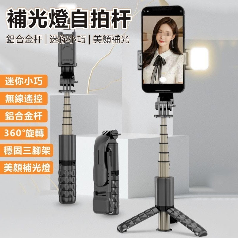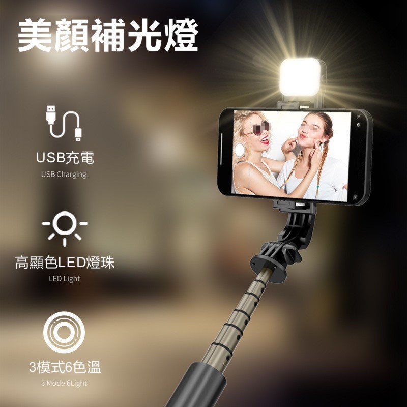 伸縮補光自拍桿 迷你自拍桿 手機自拍棒 美顏自拍棒 6檔補光燈 自拍棒 鋁合金腳架 自拍桿 適用追劇/拍照/直播/錄影