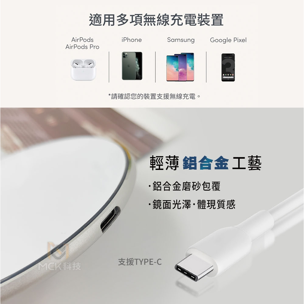閃充無線充電盤 無線充 呼吸燈 適用支援無線充電手機/iPhone/三星/AirPods等 光圈快充充電盤 無線充盤珍珠白+Type-c-1米線|經典黑+Type-c-1米線Cables, Chargers & ConvertersADHIL旗艦店