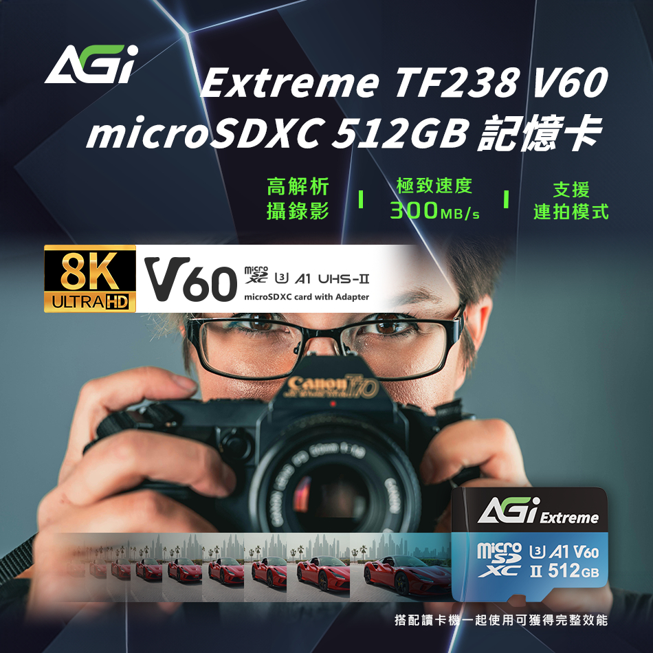 AGI亞奇雷 TF238 MicroSDXC 記憶卡|UHS-II U3 V60 高速寫入|8K錄影|專業攝影推薦128G|256G|512GMemory CardsAGI 亞奇雷官方旗艦館