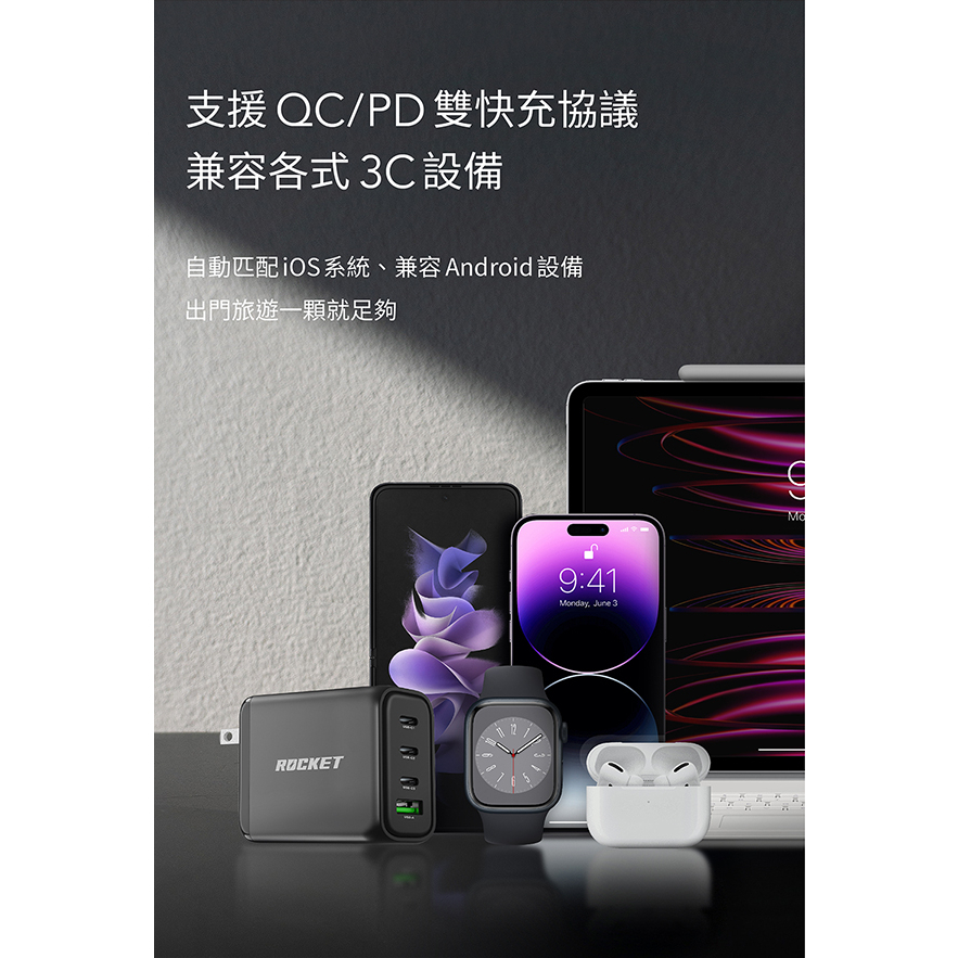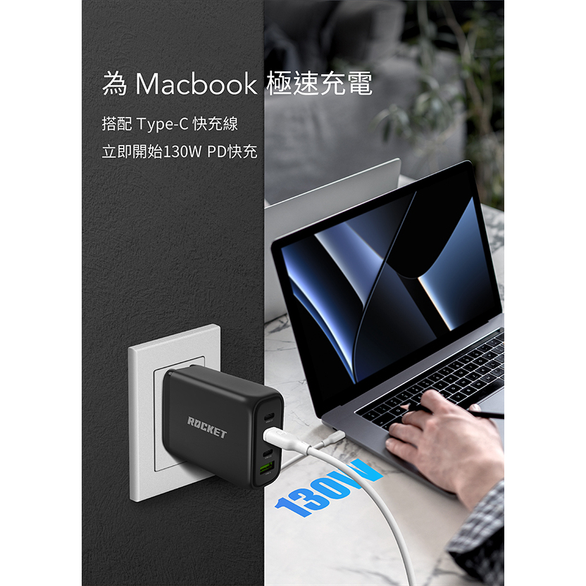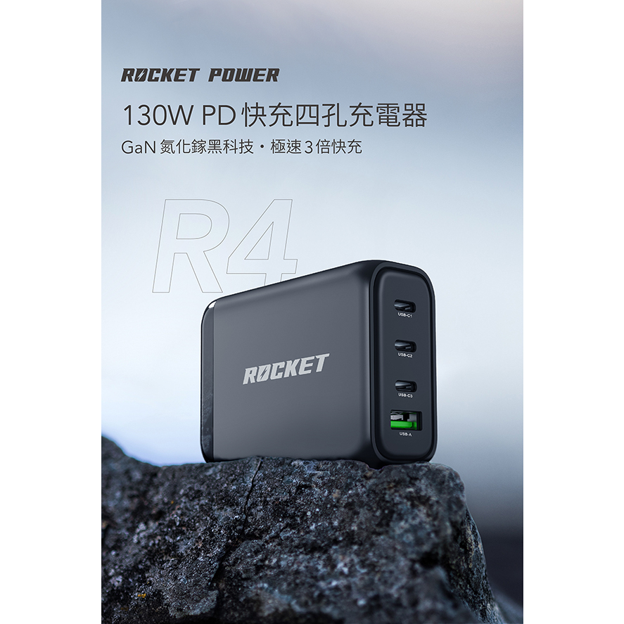 Rocket|R4|130W 四孔快充充電器 (附100W充電線) (GaN氮化鎵 2C1A 快充 蘋果 安卓)曜石黑,不加購|曜石黑,萬國轉接頭Cables, Chargers & ConvertersAzure Planet 蔚藍星球