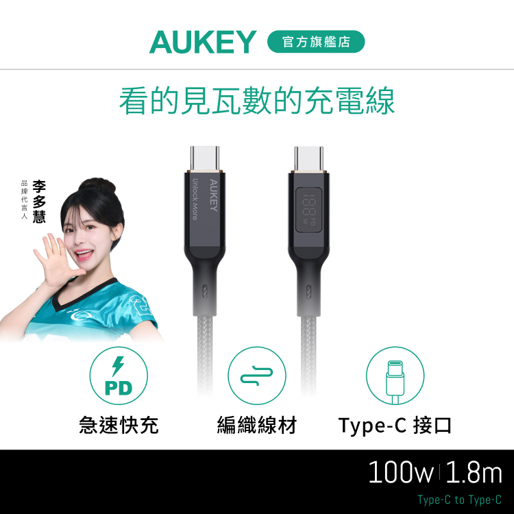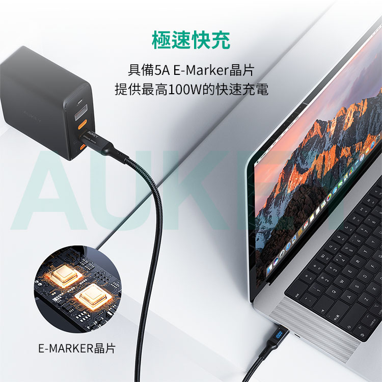 AUKEY Type-C to Type-C USB 1.8M 快充傳輸線(CB-MCC102)黑色Cables, Chargers & ConvertersAUKEY 官方旗艦店
