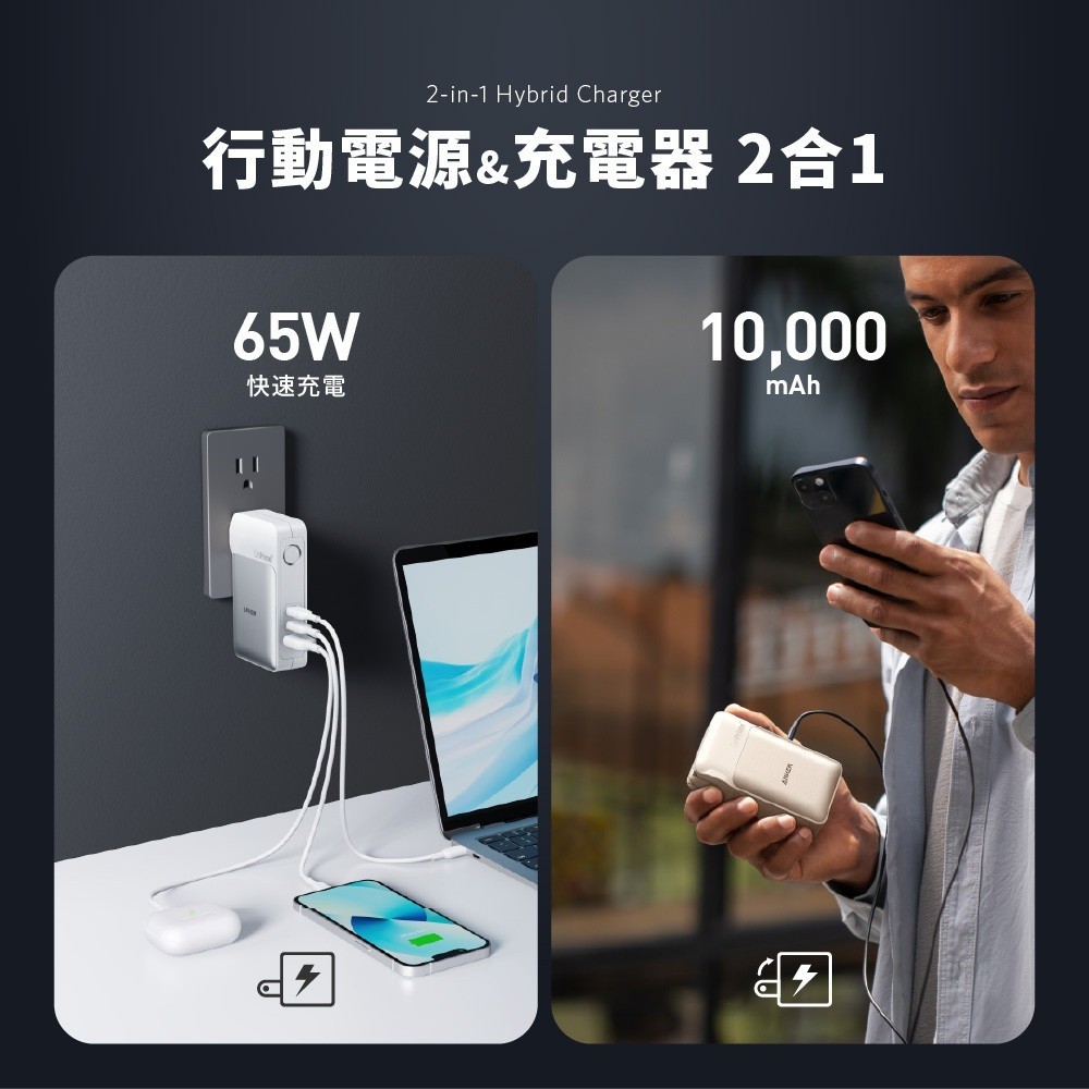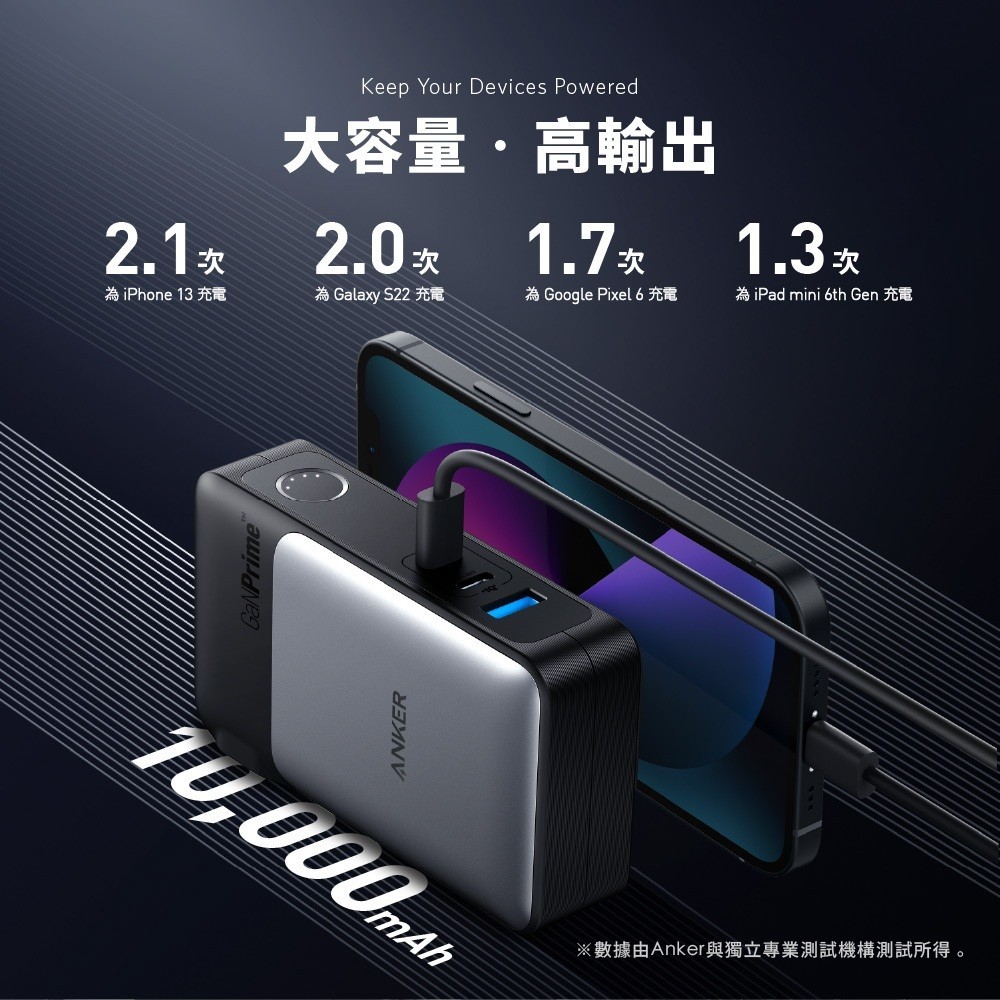 ANKER官方授權直營【37Wh 機身標示】10000mAh GaNPrime IQ3.0 行動電源 充電器 A1651A1651礦石黑|A1651礦石黑拆封福利品Cables, Chargers & ConvertersANKER 台灣旗艦館
