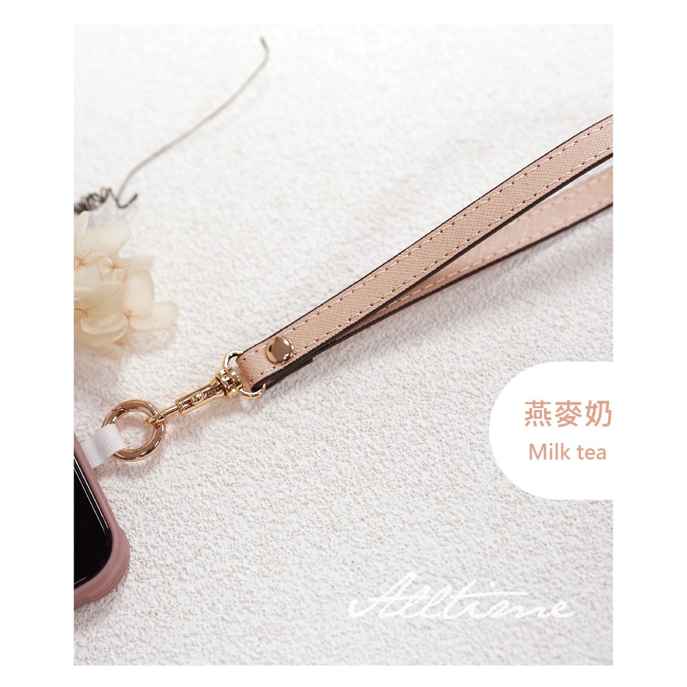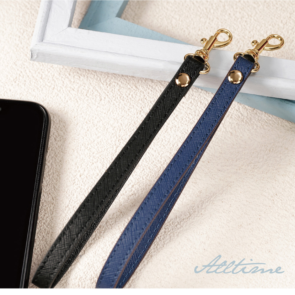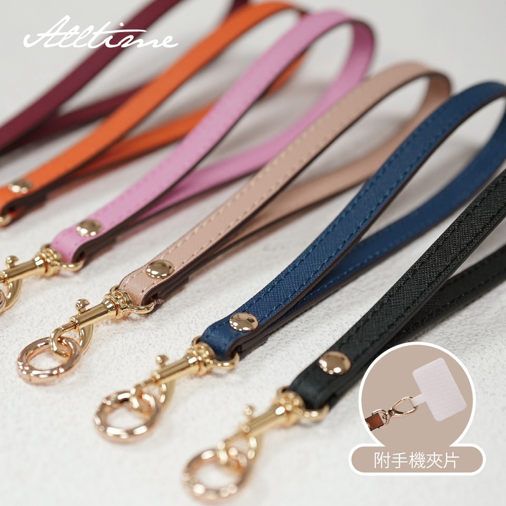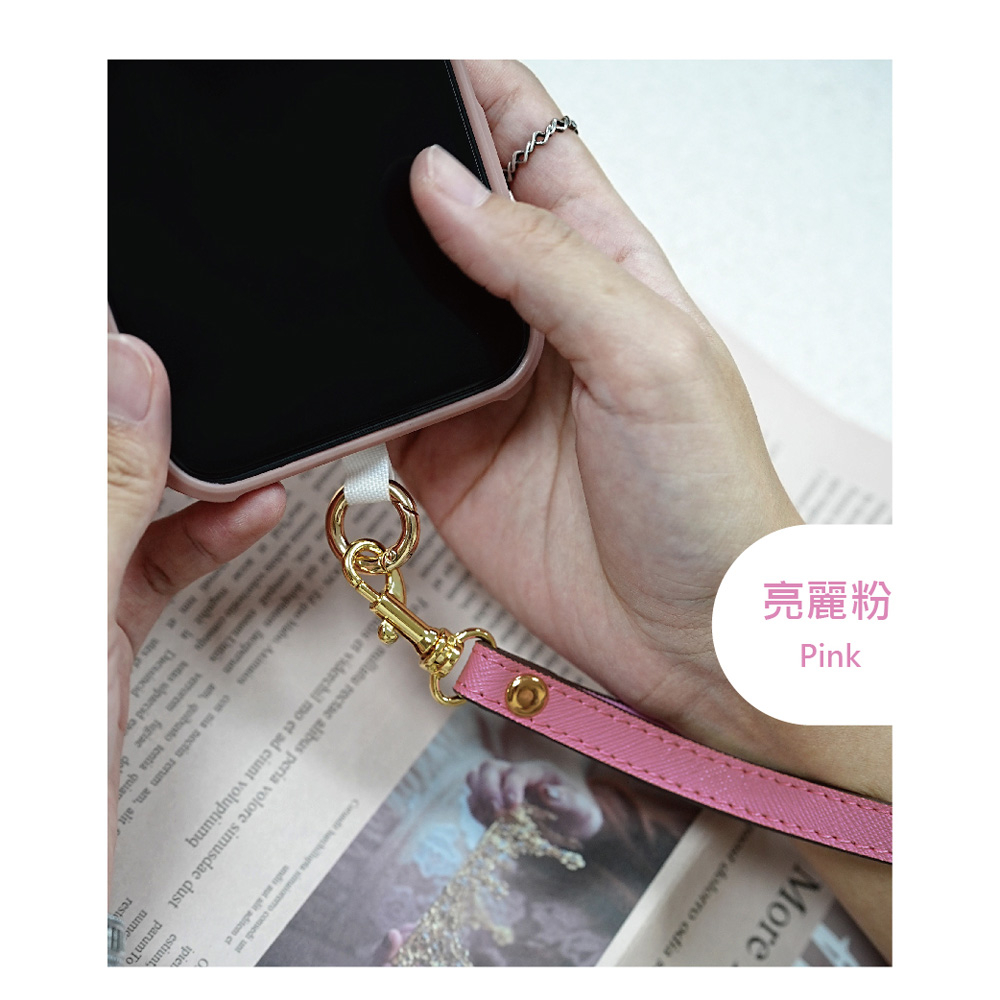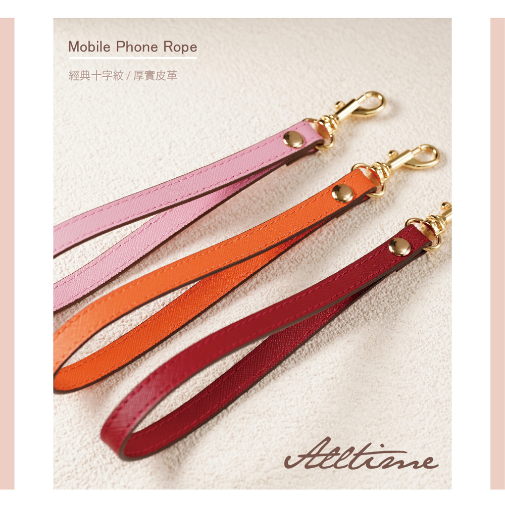 【AllTime】經典十字紋皮革腕帶手機掛繩 (附手機夾片) 手機吊繩 手機腕繩 手機繩 錢包掛繩亮麗粉|紳士黑|深紺藍|甜橙橘|玫瑰紅|燕麥奶Phone Straps & KeychainsAllTime 完全計時|智慧穿戴