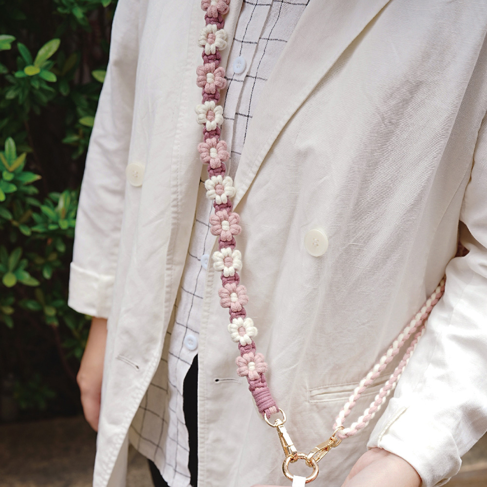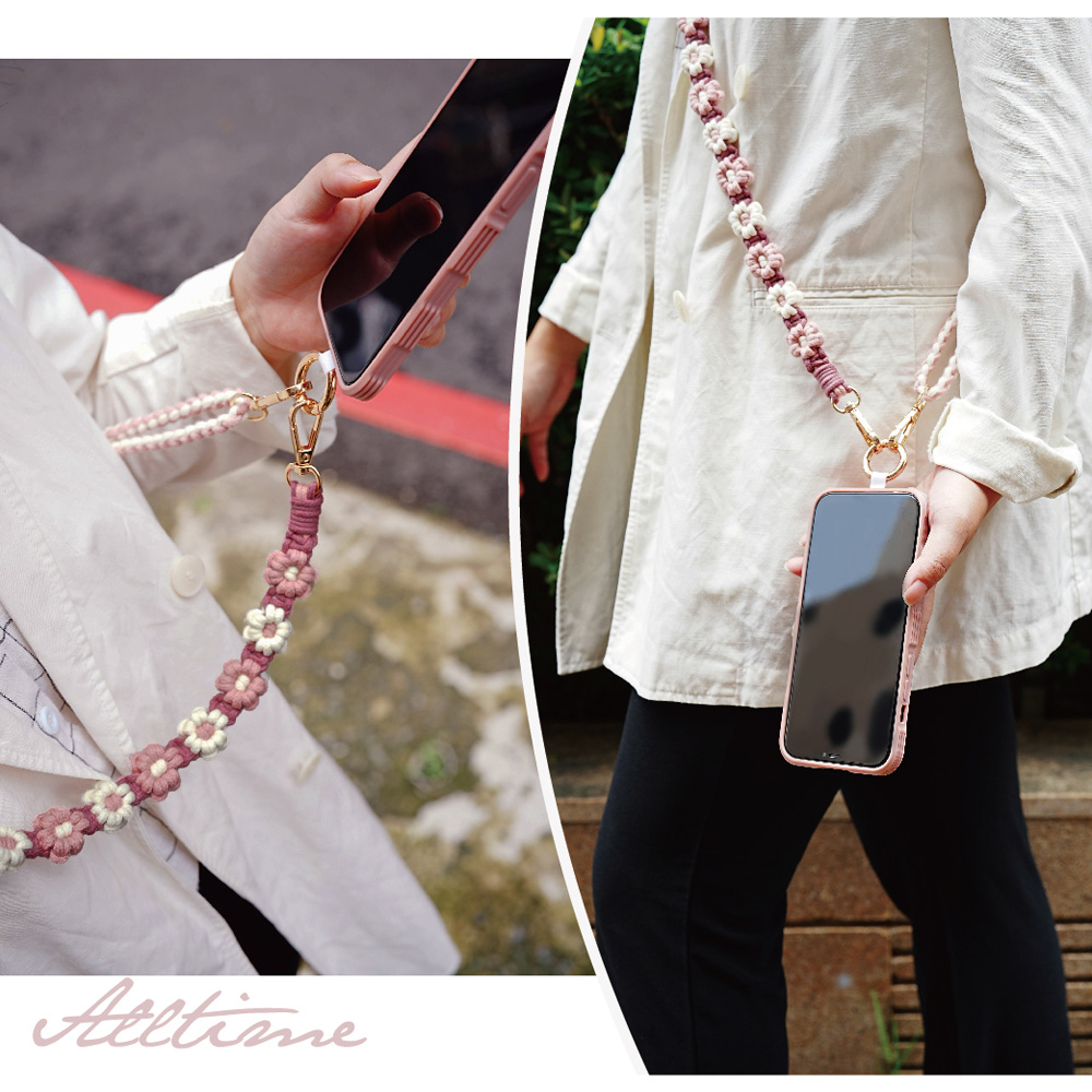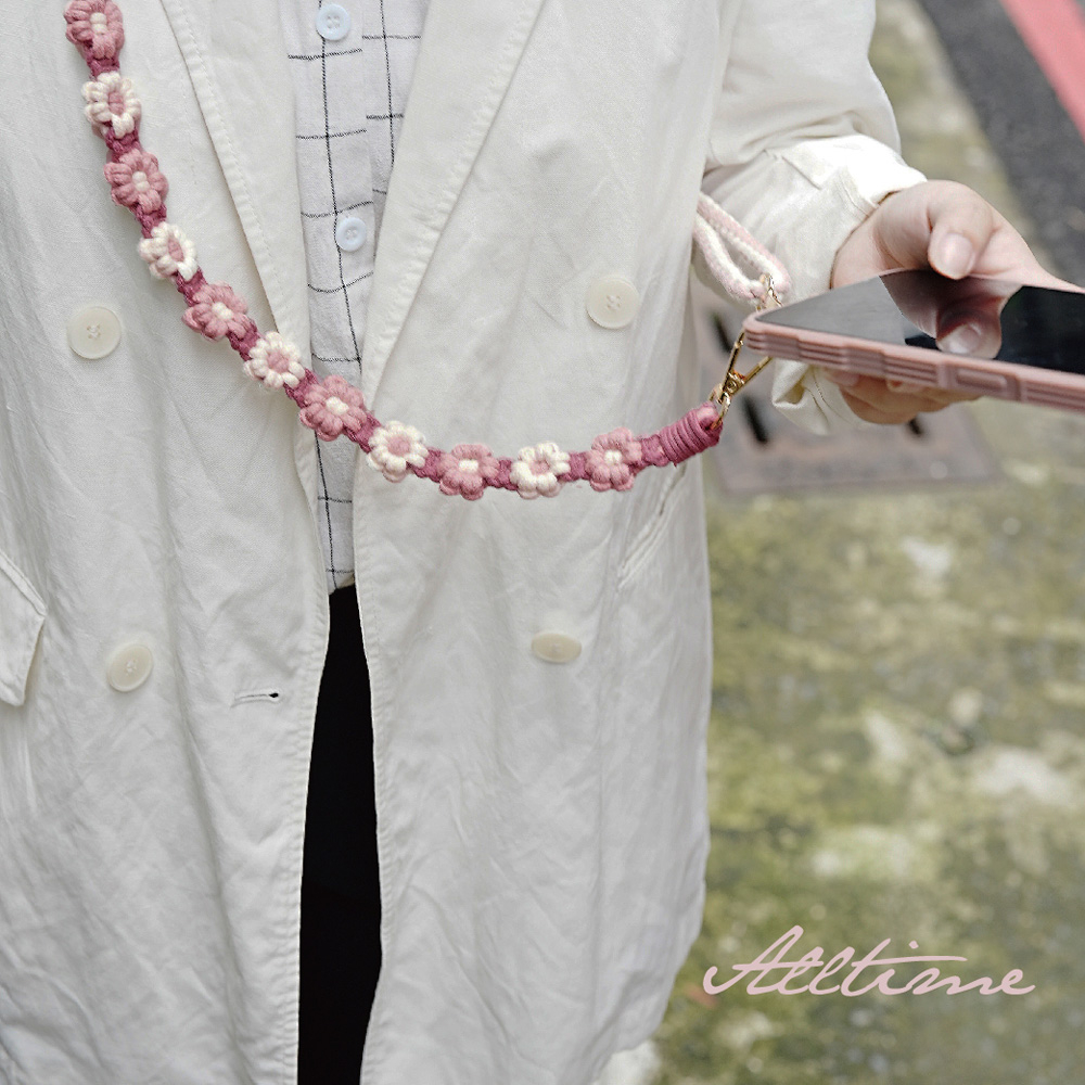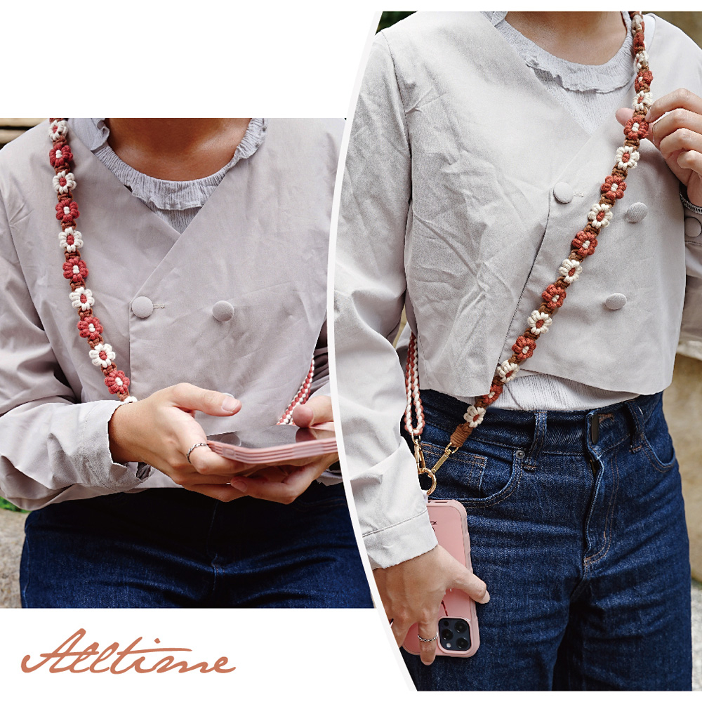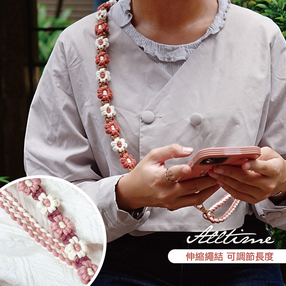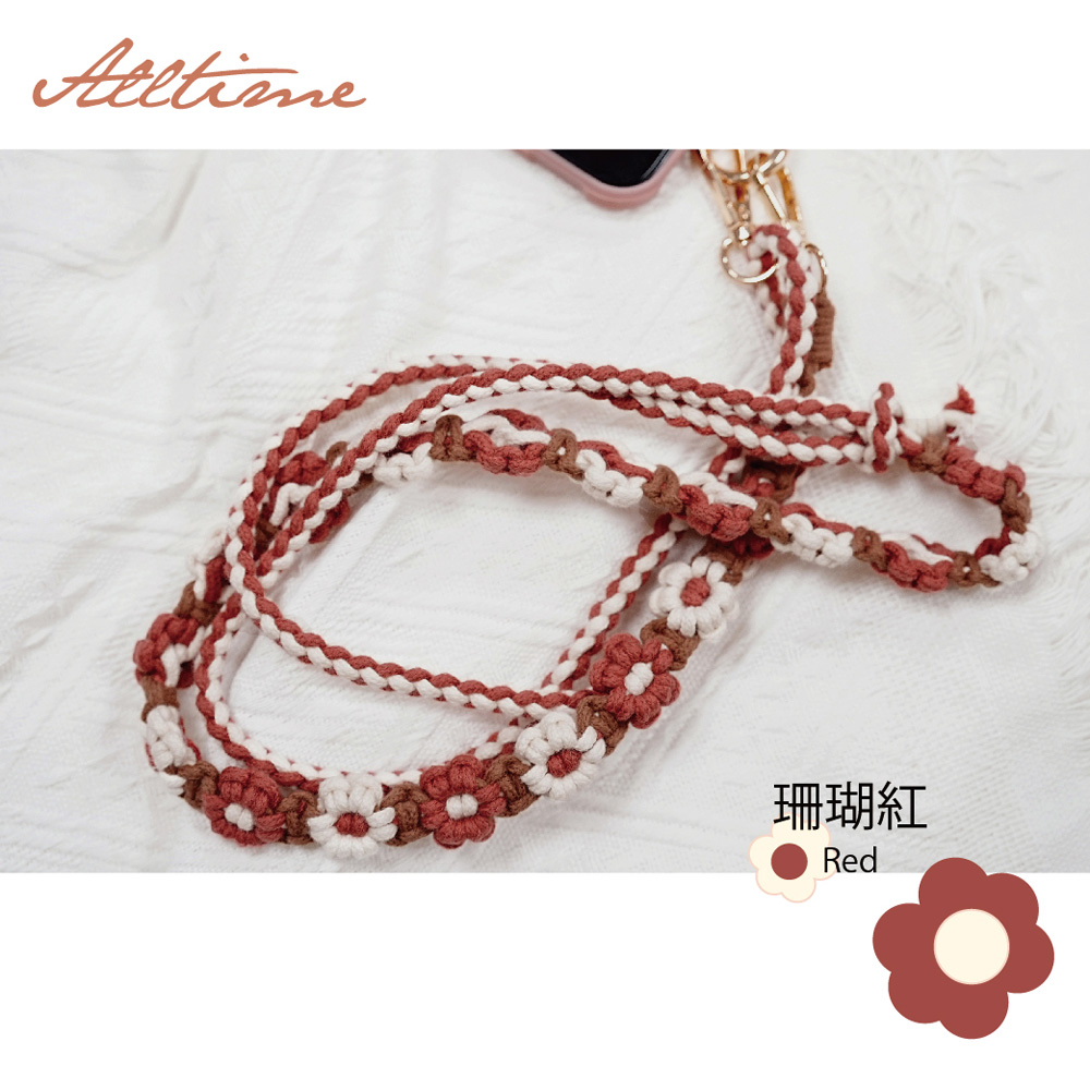 【AllTime】macrame花花可調節伸縮結繩手機背繩 (附夾片) 手機掛繩 手機吊繩 手機繩莓果粉|珊瑚紅Phone Straps & KeychainsAllTime 完全計時|智慧穿戴