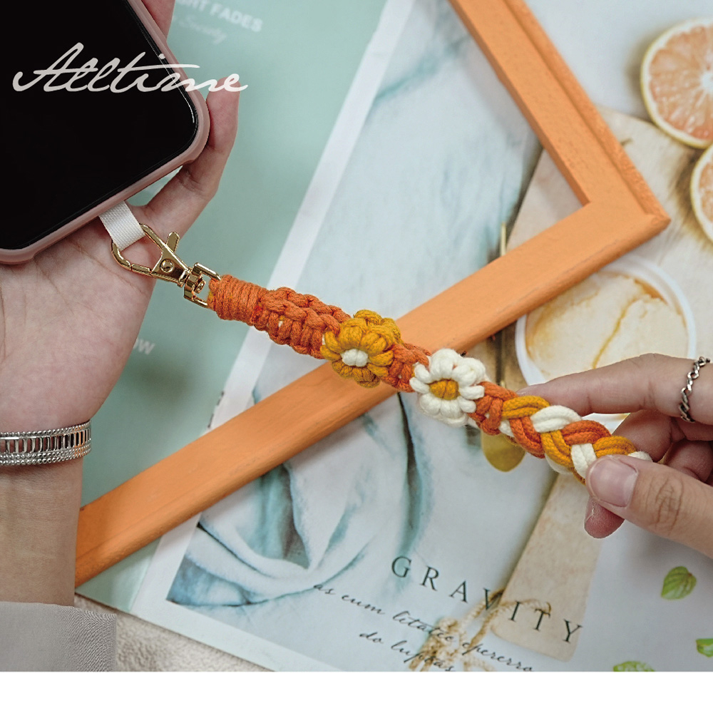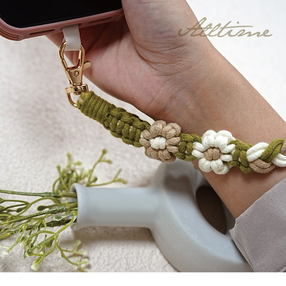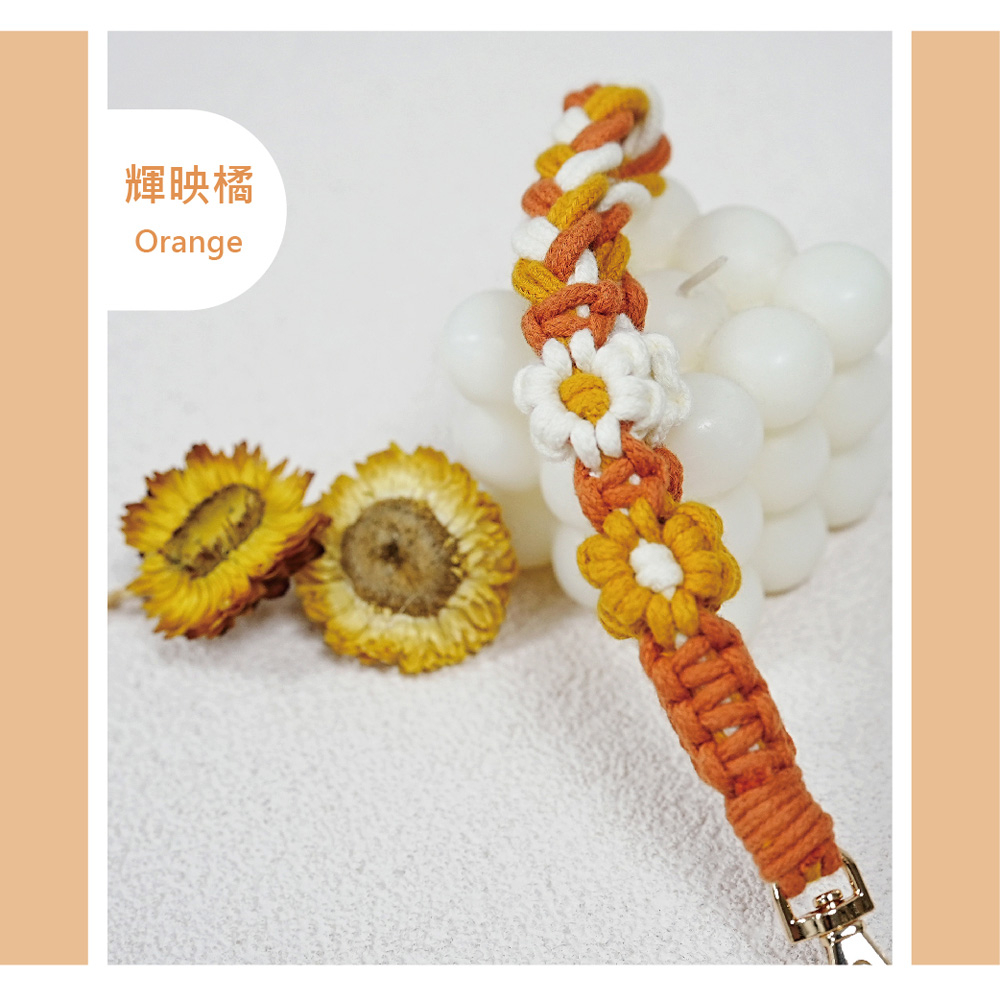【AllTime】macrame小花朵朵腕帶手機掛繩 (附手機夾片) 藍橘綠 手機吊繩 手機腕繩 手機繩朝夕藍|輝映橘|茵草綠Phone Straps & KeychainsAllTime 完全計時|智慧穿戴