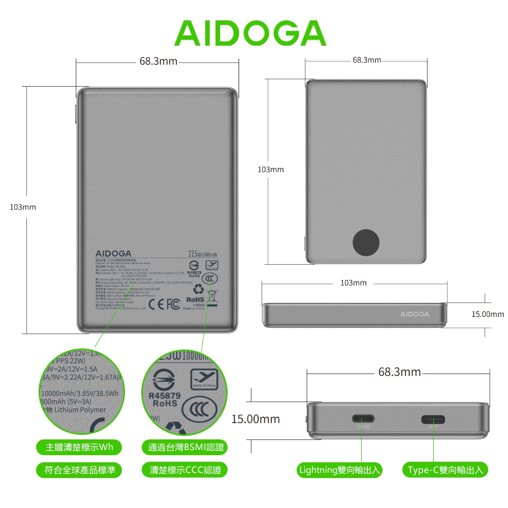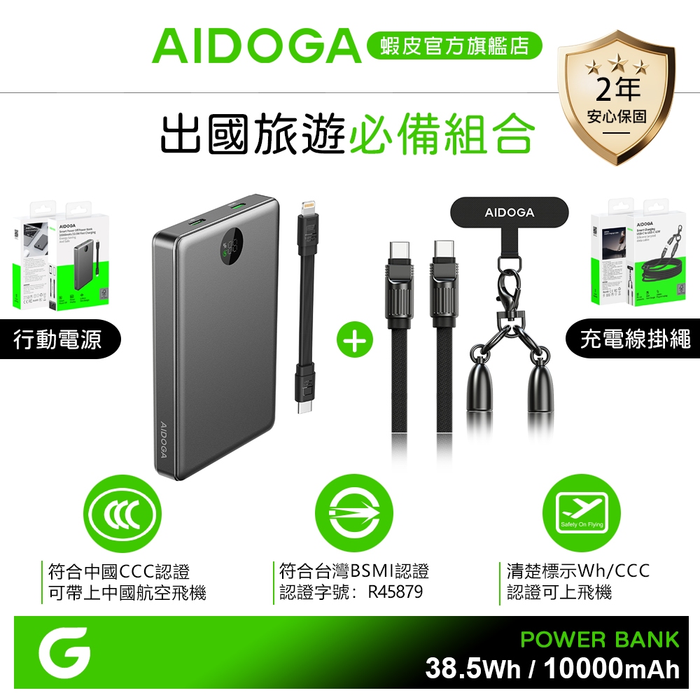 AIDOGA 10000mAh 手機掛繩快充線+行動電源 Wh 可上飛機 台灣BSMI/中國CCC認證 PD充電傳輸線Type-C TO Lightning,岩黑|Type-C TO Lightning,軍綠|Type-C TO Type-C,岩黑|Type-C TO Type-C,軍綠Powerbanks & BatteriesAIDOGA 艾迪伽官方旗艦店
