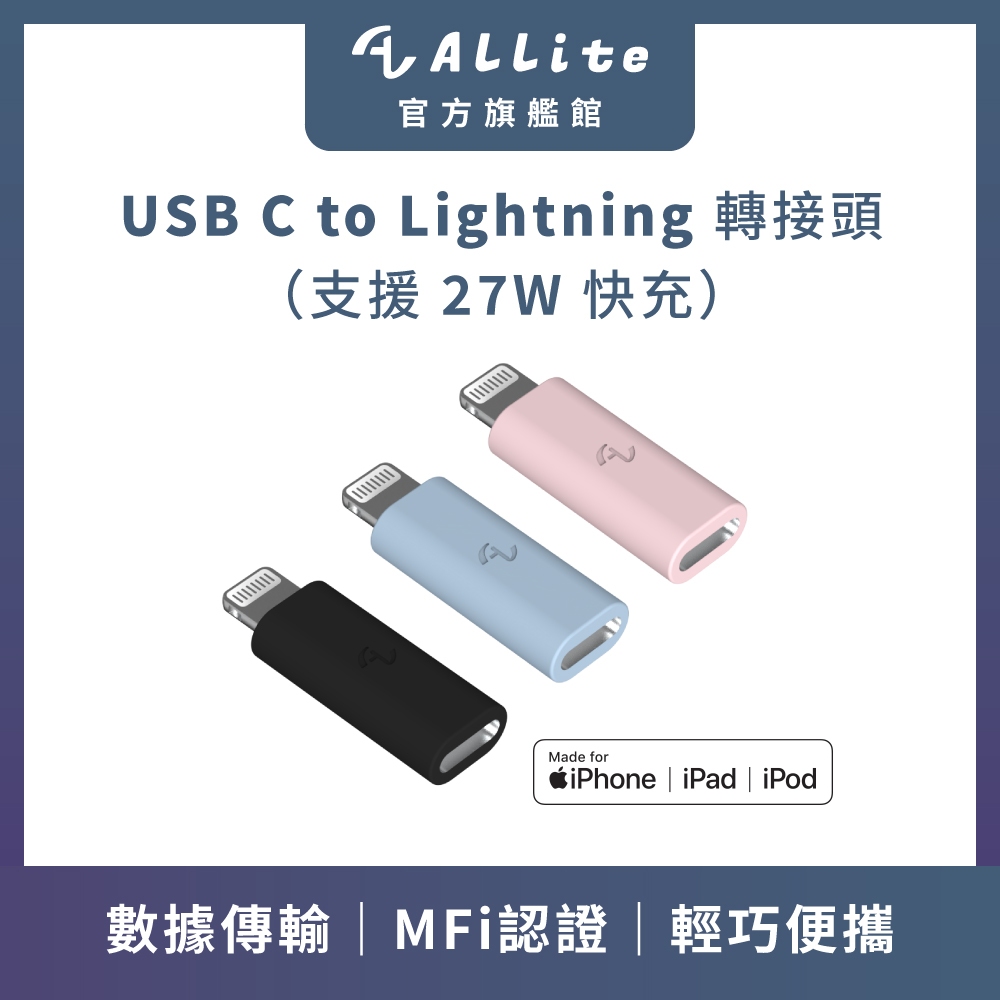 ⚡️快速出貨⚡️Allite USB C to Lightning 轉接頭|通過 MFi 支援 27w 快充寶寶藍|寶寶粉|沈穩黑Cables, Chargers & ConvertersAllite 旗艦館