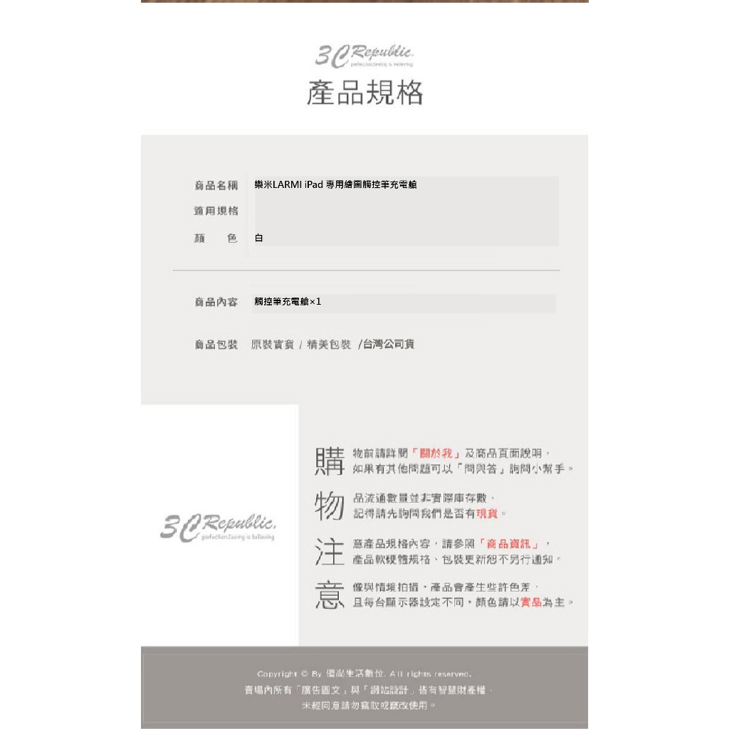 樂米 LARMI 繪圖筆 充電艙 充電器 充電座 適 iPad 觸控筆樂米iPad 觸控筆充電艙Others3c共和國
