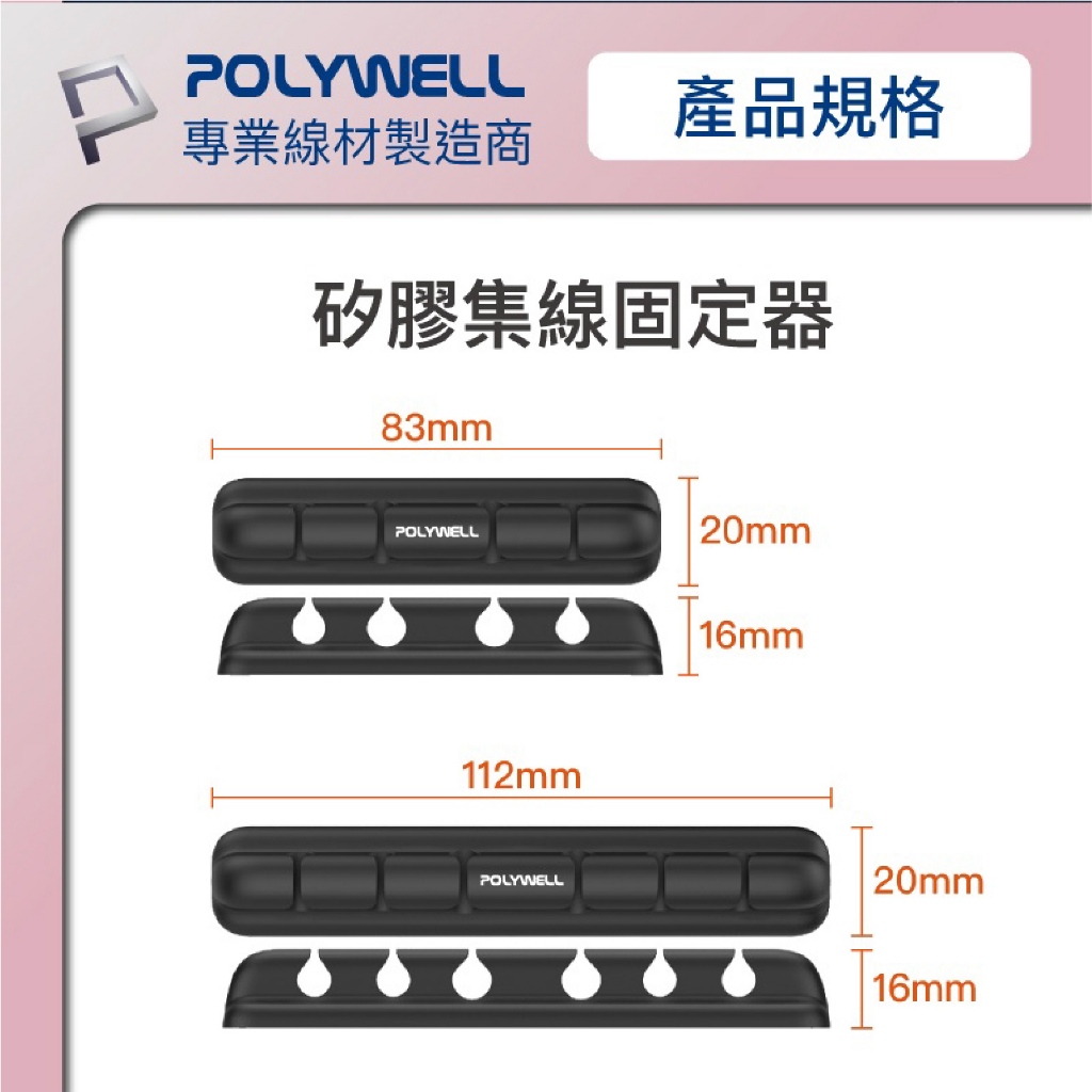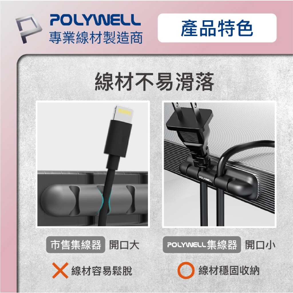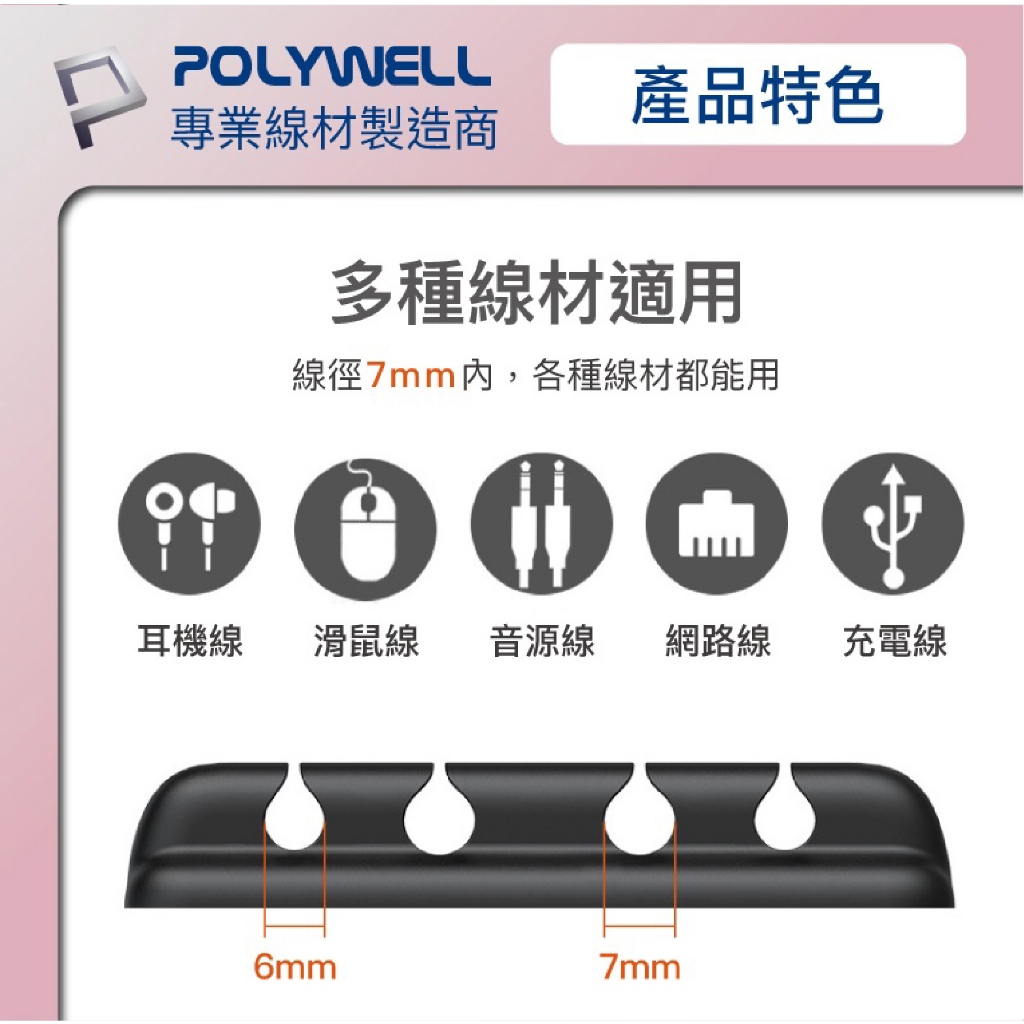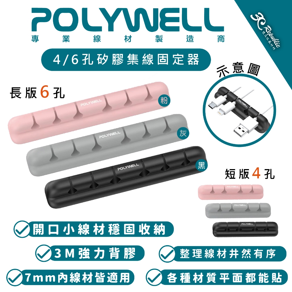 POLYWELL 矽膠 集線器 理線器 整線器 走線槽 4孔 6孔 3M 背膠 適用 7mm 以下線材