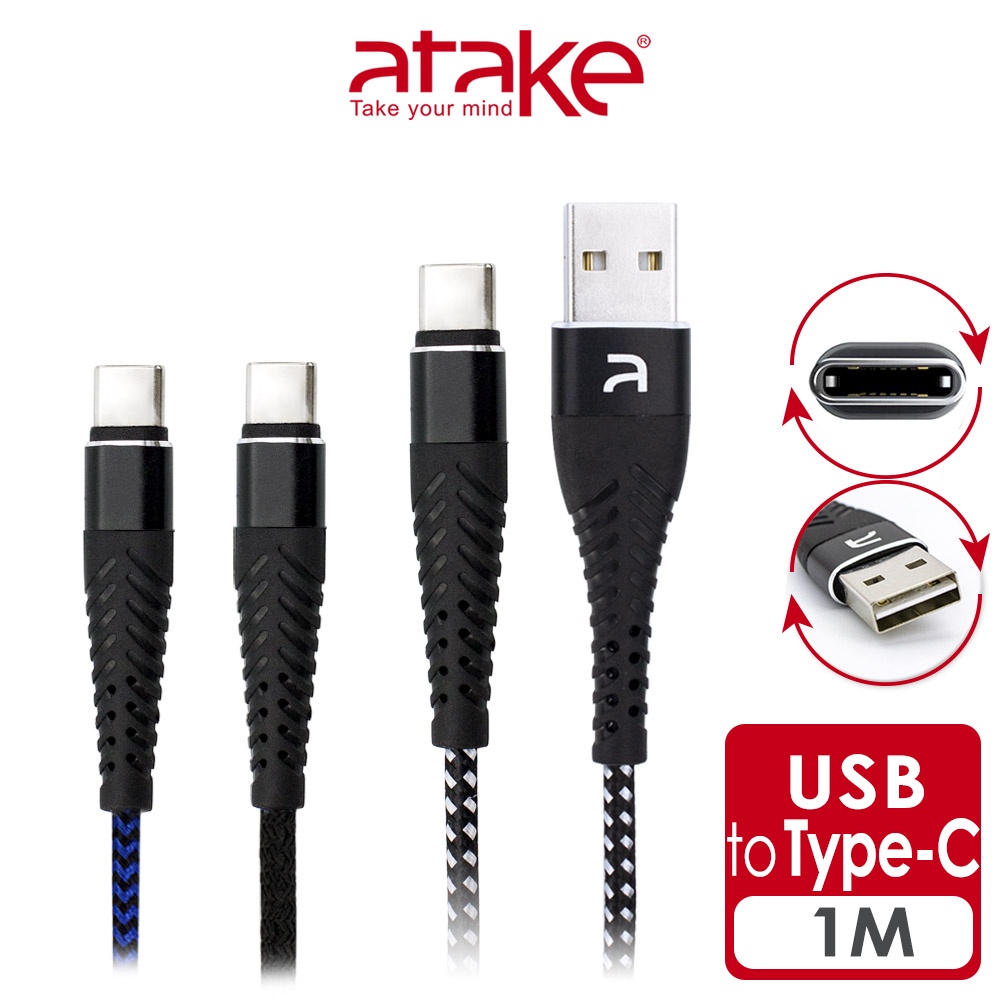 【atake】USB轉TypeC 充電傳輸線 3A快充線 QC快充 傳輸線 充電線顏色隨機|黑色Cables, Chargers & Convertersatake台灣官方旗艦店
