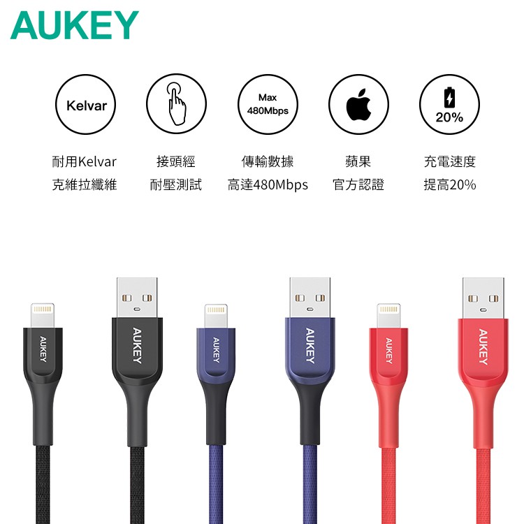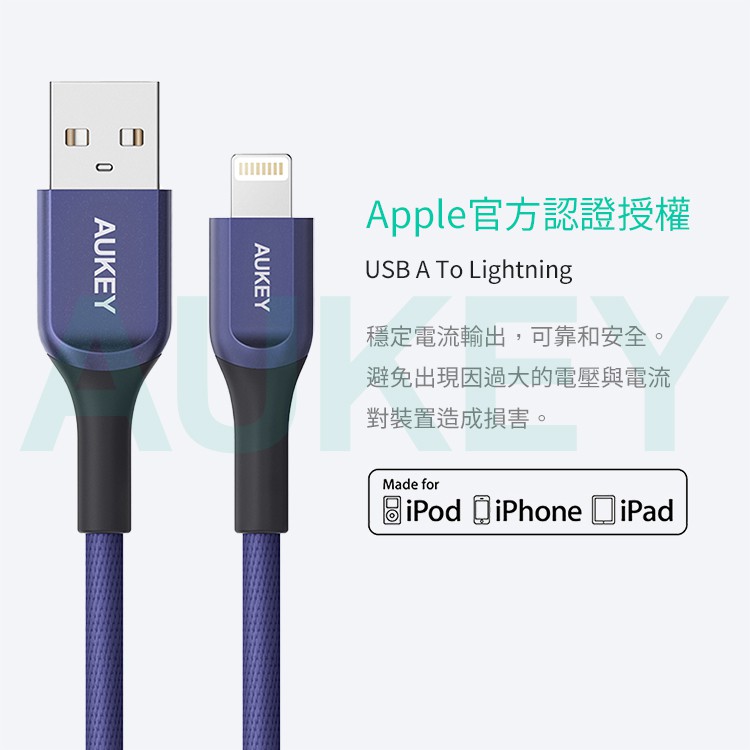 AUKEY USB-A to Lightning MFi認證 1.2/2M 充電線 (CB-AKL1/CB-AKL2)搖滾黑-2M|搖滾黑-1.2MCables, Chargers & ConvertersAUKEY 官方旗艦店