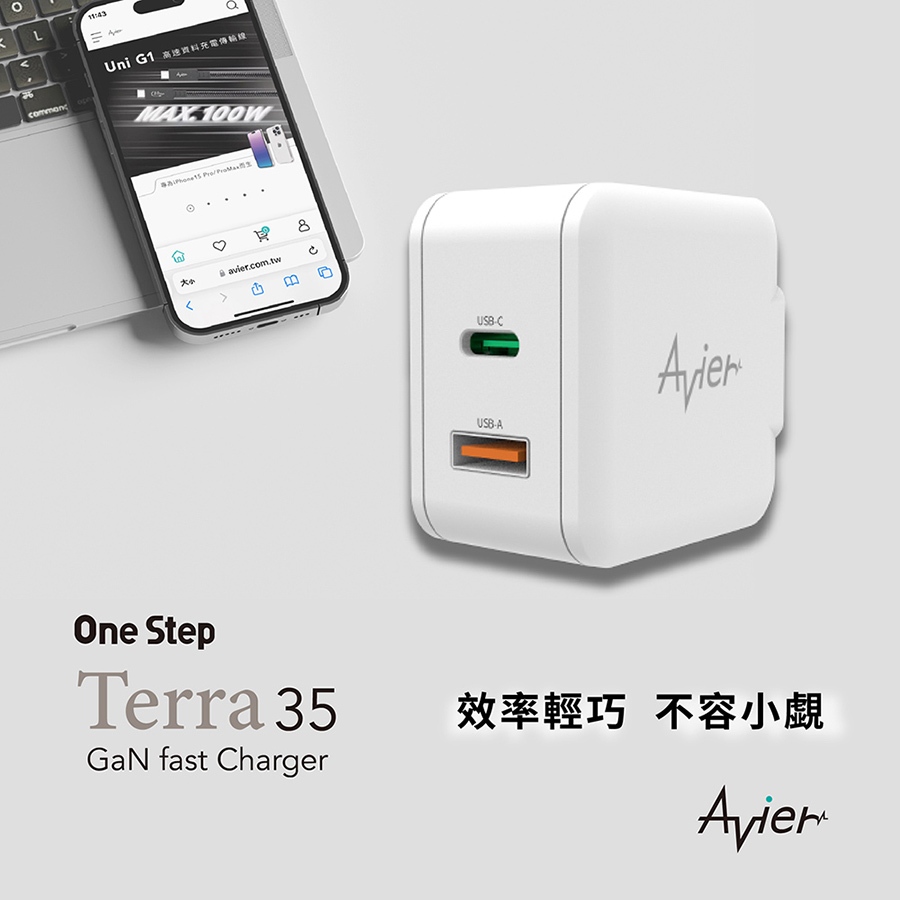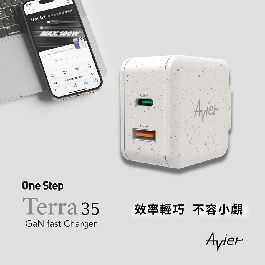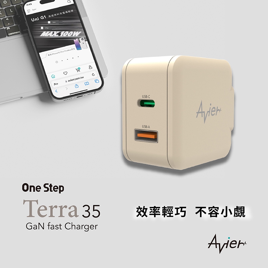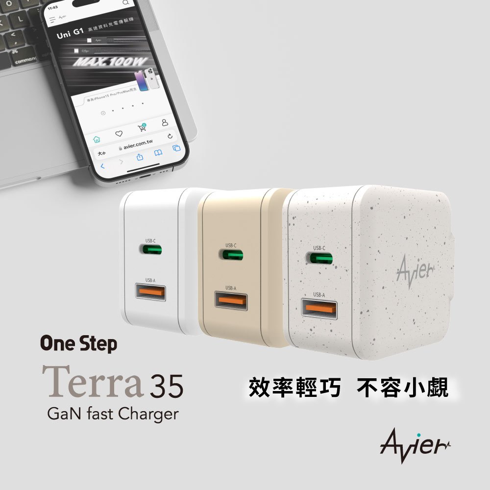 【Avier】One Step Terra 35W 雙孔 GaN氮化鎵 環保 PD快充 充電器 充電頭 快充頭 豆腐頭大地色|羽毛白|星塵灰Cables, Chargers & ConvertersAvier 官方旗艦店