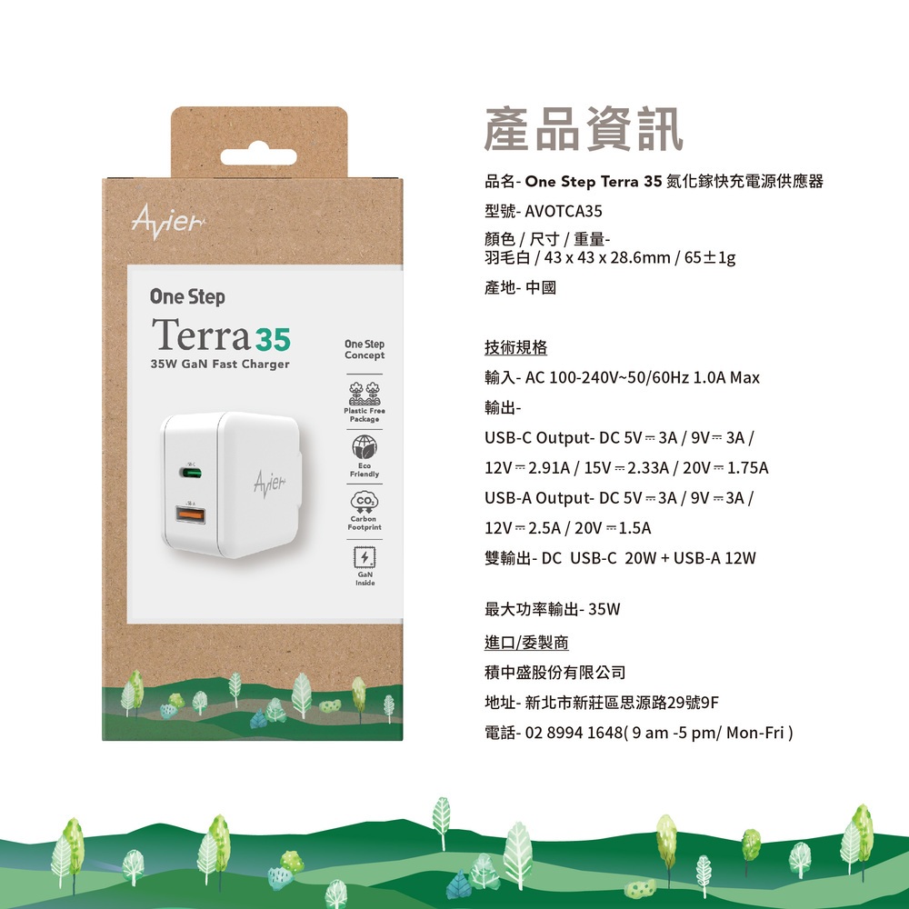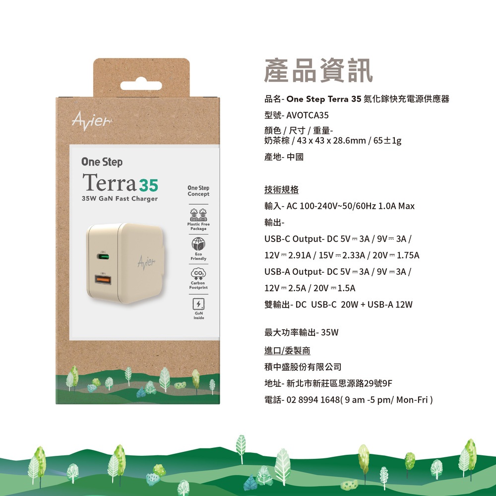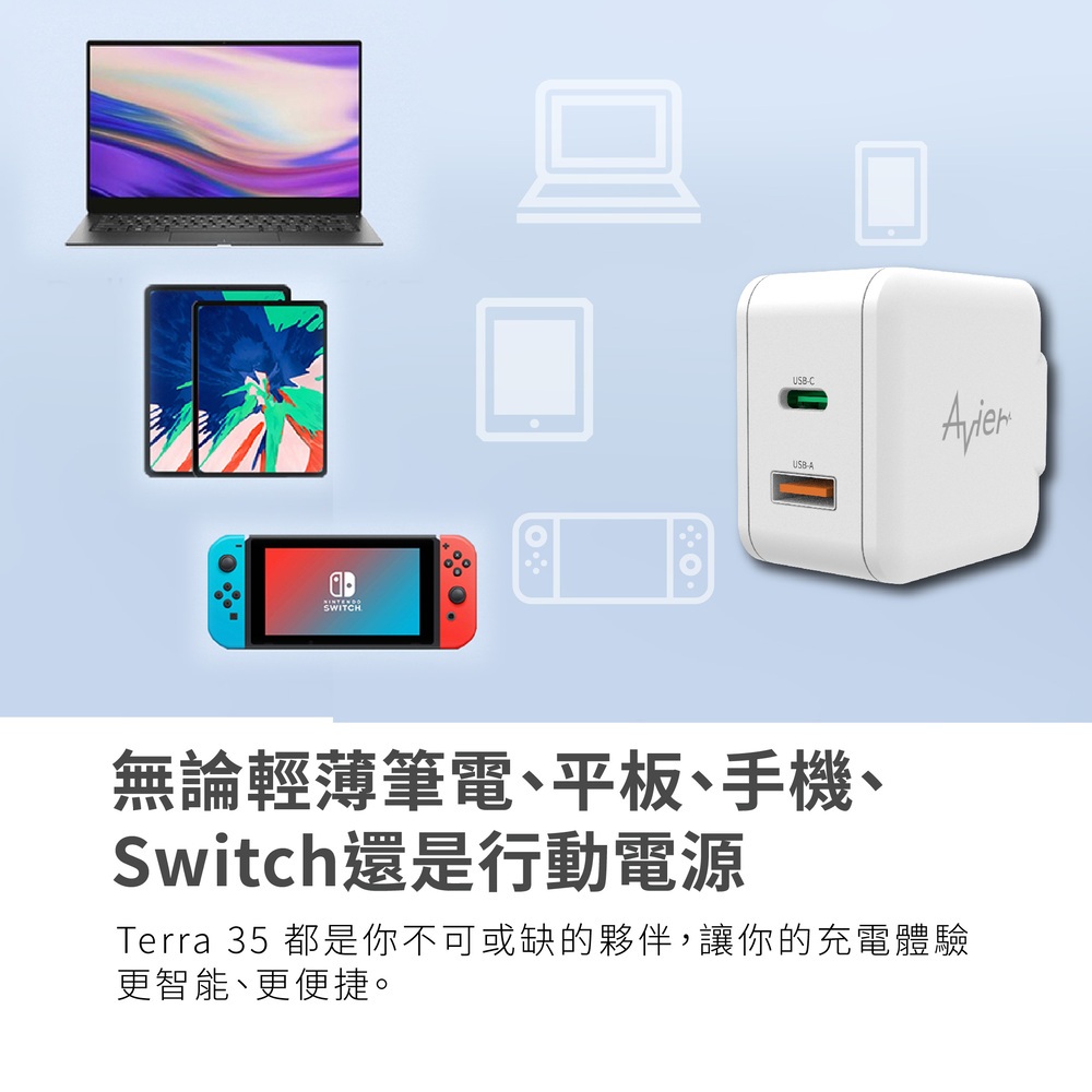 【Avier】One Step Terra 35W 雙孔 GaN氮化鎵 環保 PD快充 充電器 充電頭 快充頭 豆腐頭大地色|羽毛白|星塵灰Cables, Chargers & ConvertersAvier 官方旗艦店