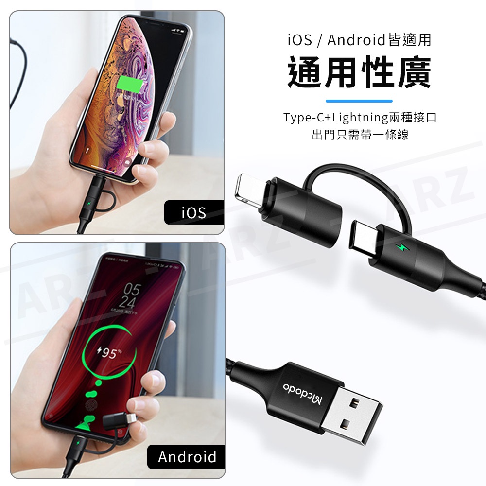 Mcdodo 雙頭充電線【ARZ 實拍現貨】【C083】60W 快充線 iPhone 充電線 Type C 安卓 傳輸線USB快充款/1.2mCables, Chargers & ConvertersARZ行動商城