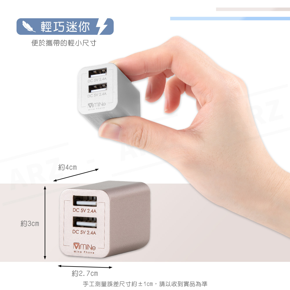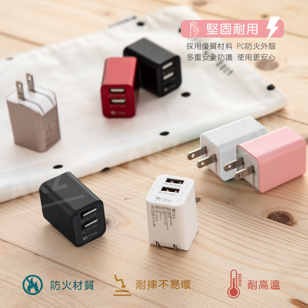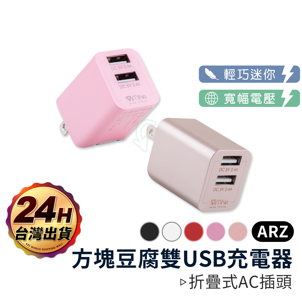 Mine峰 方塊豆腐雙USB充電器【ARZ 實拍現貨】【A096】2.4A快充 雙孔充電器 摺疊插頭 快充頭 旅充頭黑色|白色|紅色|粉紅|香檳金Cables, Chargers & ConvertersARZ行動商城